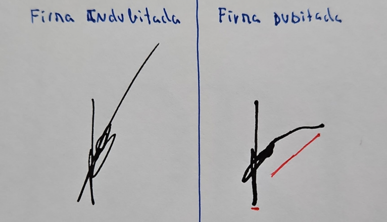 Se diferencian las firmas indubitadas (verdaderas) y las dubitadas (falsas). Las indubitadas, por ejemplo, tienen un trazo ágil y continuo, con buena coordinación entre los movimientos, lo que indica que la persona está acostumbrada a firmar de esta manera.
