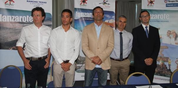 El presidente y consejero de Turismo del Cabildo de Lanzarote, Pedro San Ginés, y el consejero delegado de la Sociedad de Promoción Exterior (SPEL), Héctor Fernández, han suscrito con los representantes legales del Grupo Cabrera Medina, Autos Faycan y Rancho Texas los contratos que convierten a estas empresas en patrocinadores de esta entidad.