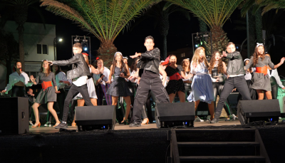 La gala dio comienzo con el alumnado de la Escuela de Danza MT Dance que llenó el escenario contagiando al público con la puesta en escena inspirada en la película Grease, donde los principales protagonistas John Travolta y Olivia Newton John imitaban a los jóvenes los cuales en los años 50 solían llevar el pelo engominado y peinado hacía atrás.
