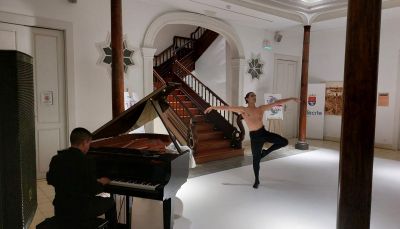 El público asistente al espectáculo que se ofreció en la Casa de la Cultura Agustín de la Hoz, que contó con una amplia presencia de antiguas alumnas del homenajeado, pudo disfrutar de la actuación del Coro de la Asociación Salud Mental El Cribo, con la colaboración del docente Reinier Alfonso y sus alumnas de ballet. Tras ellos, tuvo lugar la actuación de Sergio Pérez Aguiar, bailarín natural de la isla de Gran Canaria, acompañado del pianista Fernando Pérez Aguiar, quienes interpretaron una pieza de danza clásica creada para el evento.
