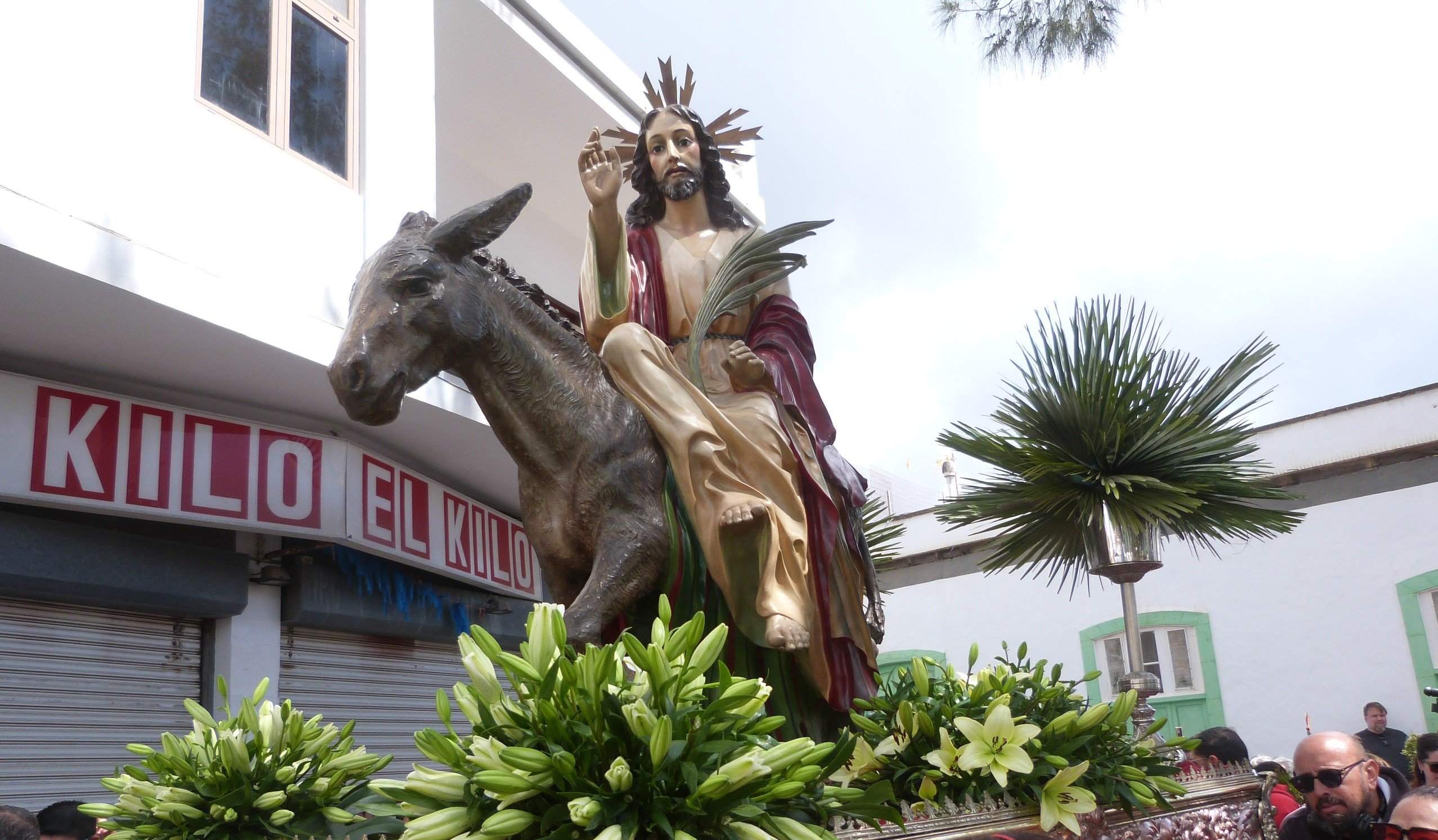 Finalizada la Eucaristía se puso en marcha la procesión del "Señor de la Burrita", encabezando la misma la Banda de Música Unión Musical de Lanzarote, dirigida por el profesor Pepe Artiles presidiendo la misma el párroco titular Juan Carlo Medina. Los feligreses con las ramas y palmas en alto cantando recorrieron las calles de la ciudad y la avenida marítima concluyendo la misma en la iglesia de San Ginés con el repicar de las campanas y los aplausos de los feligreses. Dando por concluida esta jornada, uno de los días más significativos del calendario litúrgico cristiano que marca el inicio de la Semana Santa.