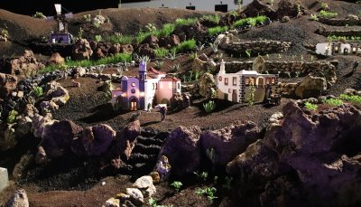 En el centro de la caldera volcánica del Belén, está representada Playa Blanca, Salinas de Janubio y la ciudad de Arrecife. Alrededor de esta bella composición artesanal, encontramos el sendero guía para visitantes, mientras que en las laderas del cono volcánico podemos apreciar lugares variopintos de Lanzarote y la espectacular simulación eruptiva en Timanfaya, animada cada cinco minutos por una columna de emisión de gases, fuego y lava, luces, sonido y efectos especiales. Una de las novedades que llamó la atención del Belén es el diseño de una enorme cascada.