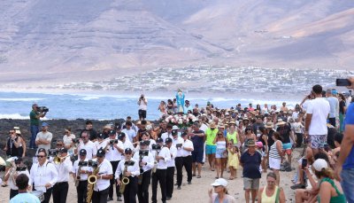 La localidad de Caleta de Famara vivió este domingo uno de los momentos más esperados de sus fiestas en honor al Sagrado Corazón de María, congregando a decenas de feligreses en la celebración.