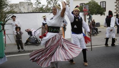 Los carros engalanados, las agrupaciones folclóricas y las parrandas alegraban con sus cantos y bailes a los que también se les unían los cientos de romeros y romeras ataviados con trajes tradicionales, llenando a su paso de color las calles de San Bartolomé y compartiendo los productos más representativos en estas manifestaciones. Durante el evento no faltó el gofio amasado, los pejines, el queso y la rica y variada repostería casera de tanta fama en San Bartolomé ,sin olvidar el vino de cosecha propia.