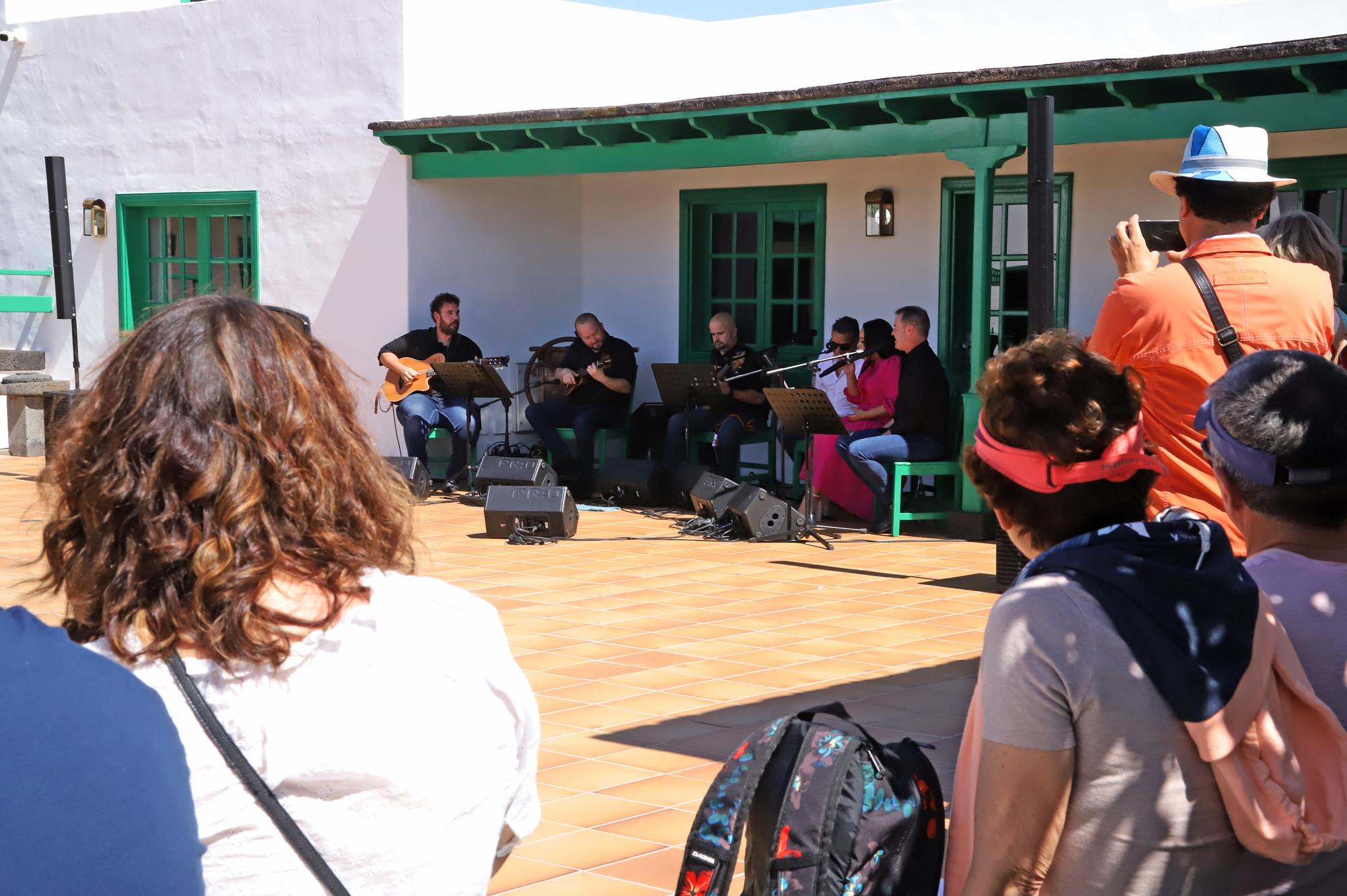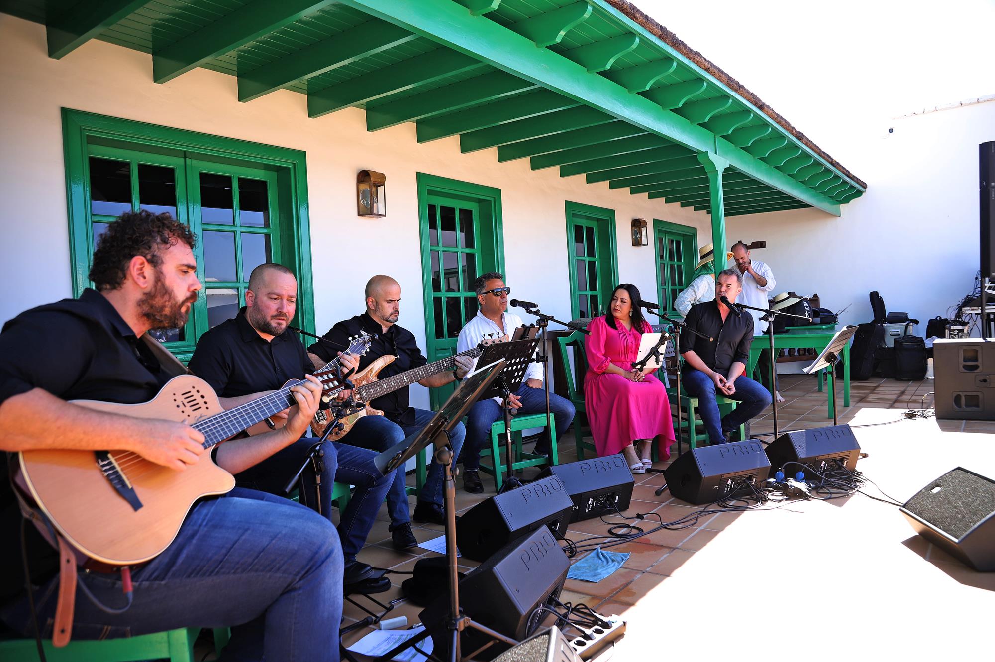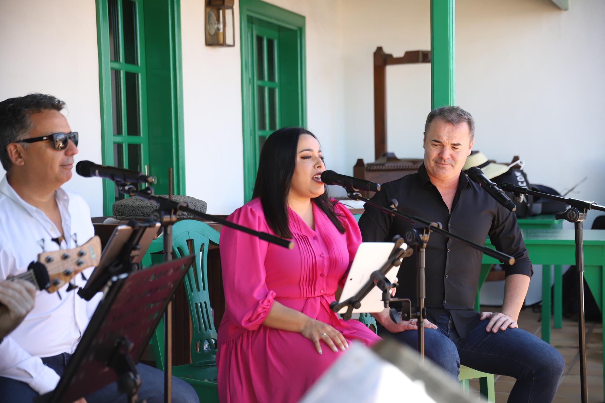 La Casa-Museo del Campesino fue el escenario elegido para presentar una de las partes que incluye el proyecto "Palabra de Lanzarote", una propuesta orginal de "Panza Arriba Producciones" en colaboración con los Centros de Arte, Cultura y Turismo de Lanzarote. A las 11 de la mañana, en el patio exterior y junto a las tiendas de artesanía, daba comienzo el concierto avalado por tres grandes músicos conocedores de la música tradicional canaria. José Vicente Pérez al timple, Manuel Adrián Niz a la guitarra y Acorán Ramón al bajo fueron los encargados de arropar las potentes y afinadas voces de tres grandes solistas como Almudena Hernández, Manuel Estupiñán y Ciro Corujo.