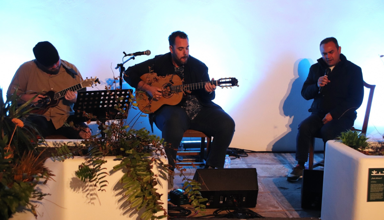 La jornada del viernes dedicada al pensamiento crítico en voz alta y a la música de letras y sonidos encantadores finalizó con un concierto en el pato interior de la Casona de Femés protagonizado por dos virtuosos de las cuerdas, Adrián Niz (guitarra) y José Vicente Pérez (timple), y el chorro de voz de Pedro Manuel Afonso, una actuación propuesta por el Ayuntamiento de Yaiza que fue subvencionada por el Área de Cultura del Cabildo de Lanzarote, las dos instituciones comprometidas en el montaje de ‘Arte. Yaiza. La colección’.
