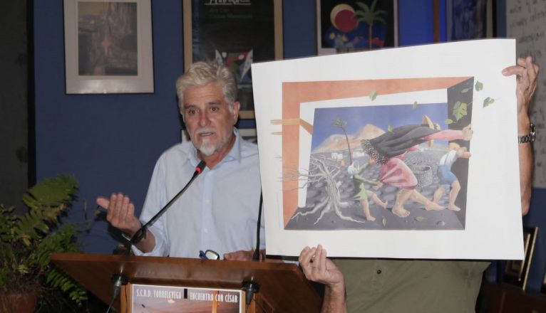 La proyección del cortometraje 'César Manrique, Palabra y Compromisos. Al Poder le Incomoda', la noche del pasado jueves cerraba el ciclo que la Sociedad Torrelavega ha dedicado al artista en la programación con motivo del 75 aniversario. Un acto con un público muy concurrido al que también asistió el presidente de la Fundación César Manrique, José Juan Ramírez y el director del Departamento Pedagógico, Alfredo Díaz, fue el encargado de hacer interesante la presentación del cortometraje que fue realizado en la sala José Saramago de La Plazuela en el año 2019, con motivo de la celebración de nacimiento de César Manrique.