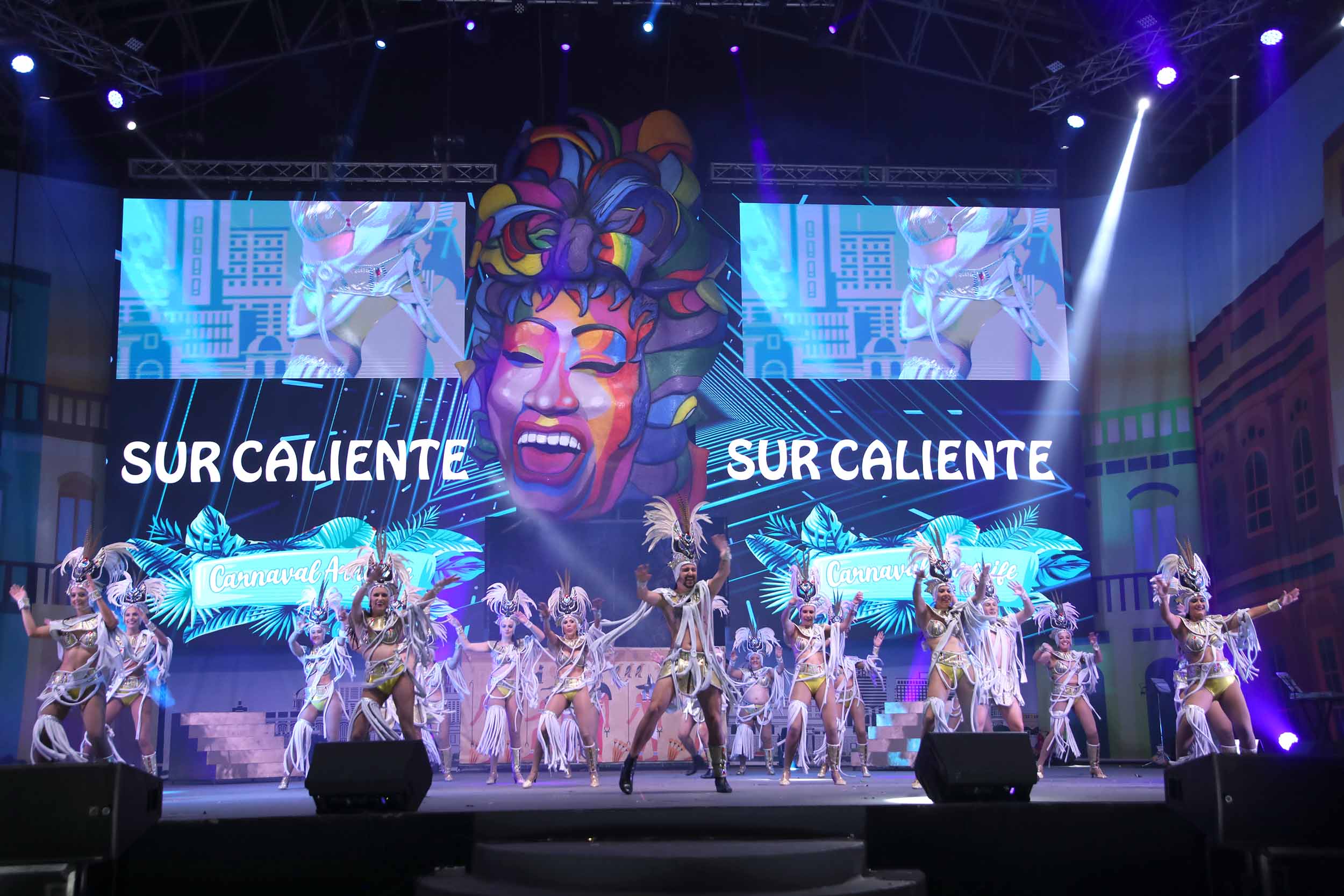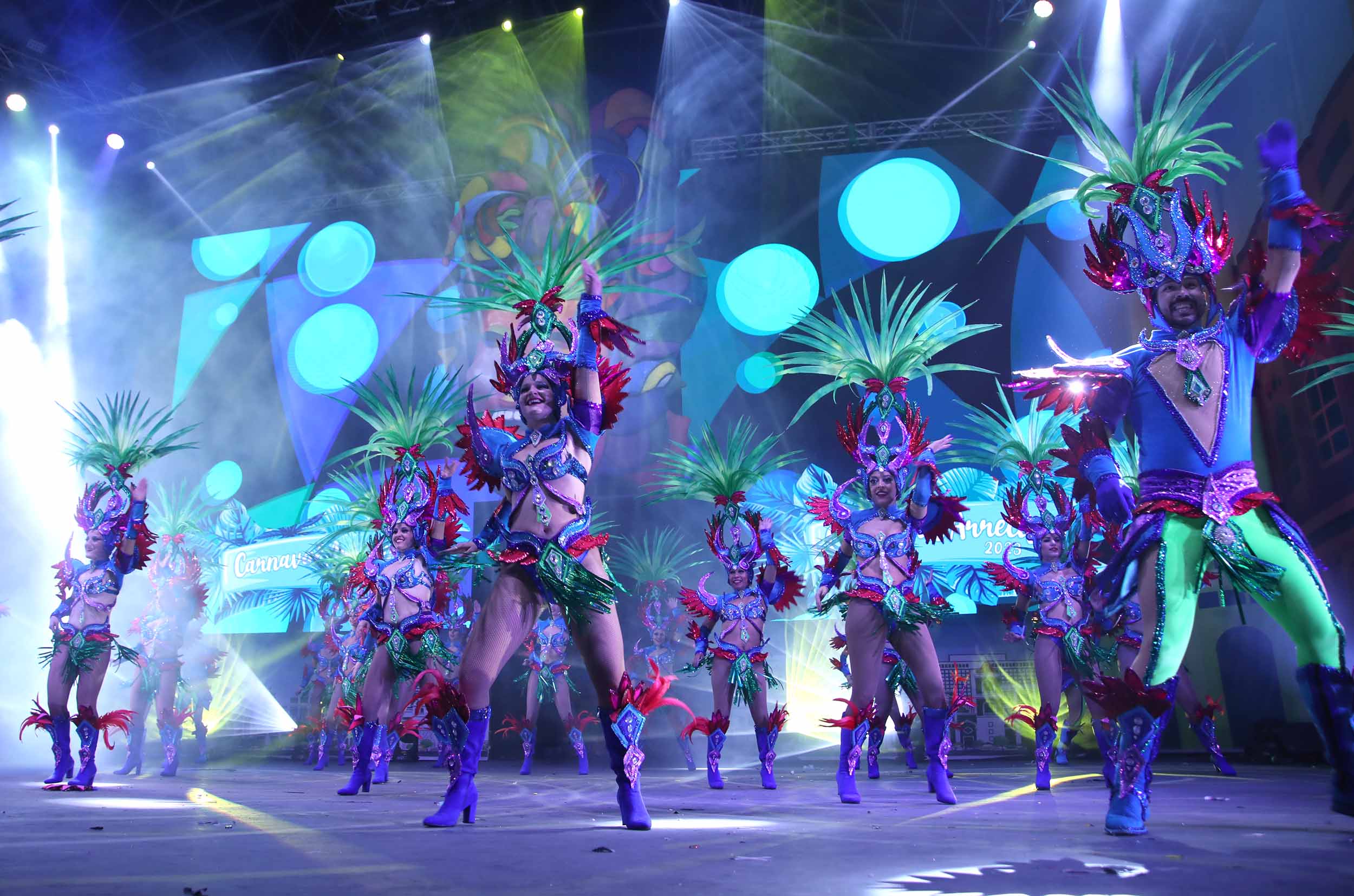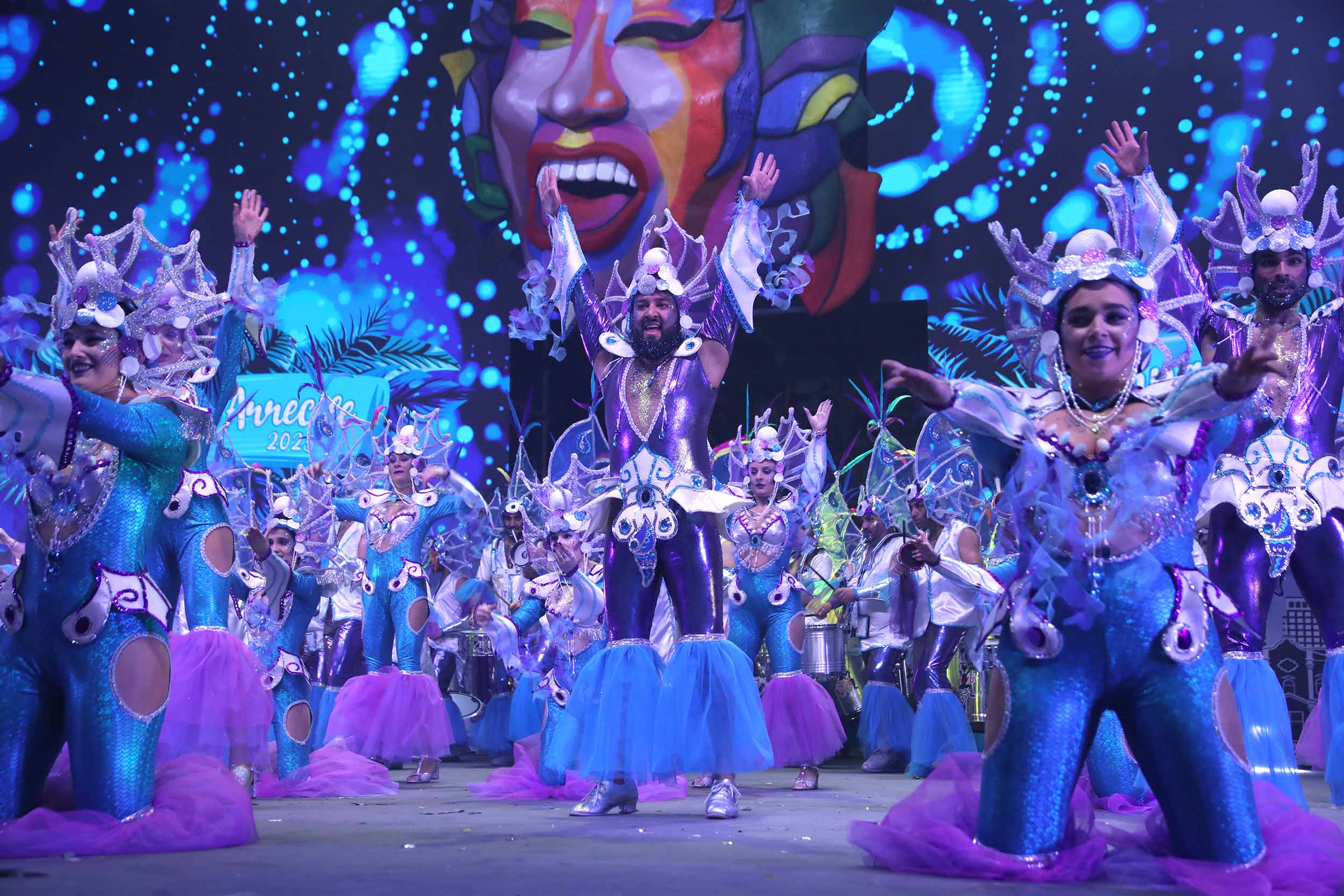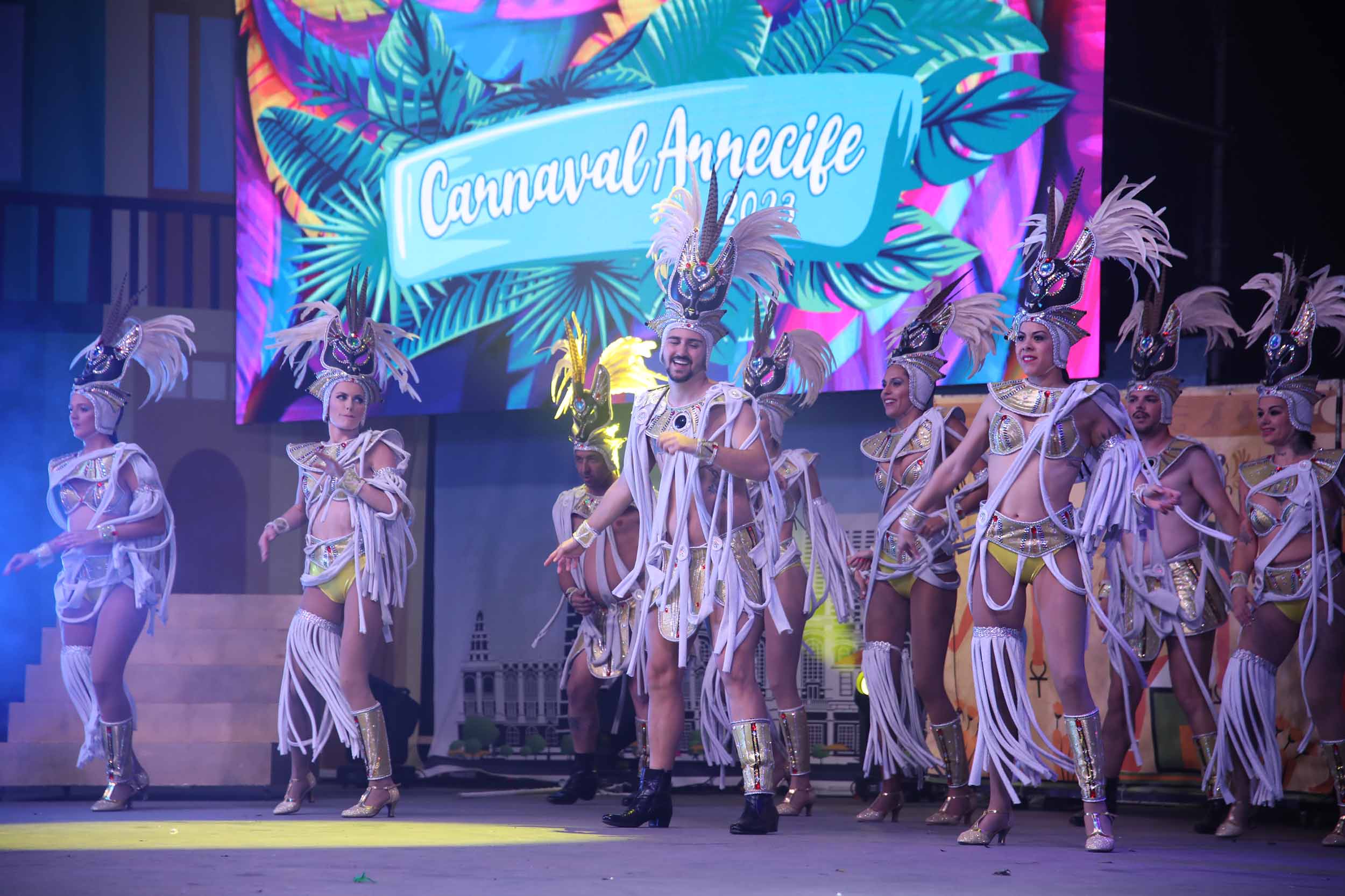 El recinto ferial de Arrecife fue el escenario de una espectacular exhibición de comparsas en el marco de las celebraciones del Carnaval que produjo un estallido de color, música y baile gracias a la participación de las comparsas “Sur Caliente”, “Timanfeiros”, “Guaracheros” y “Cumbacheros”.