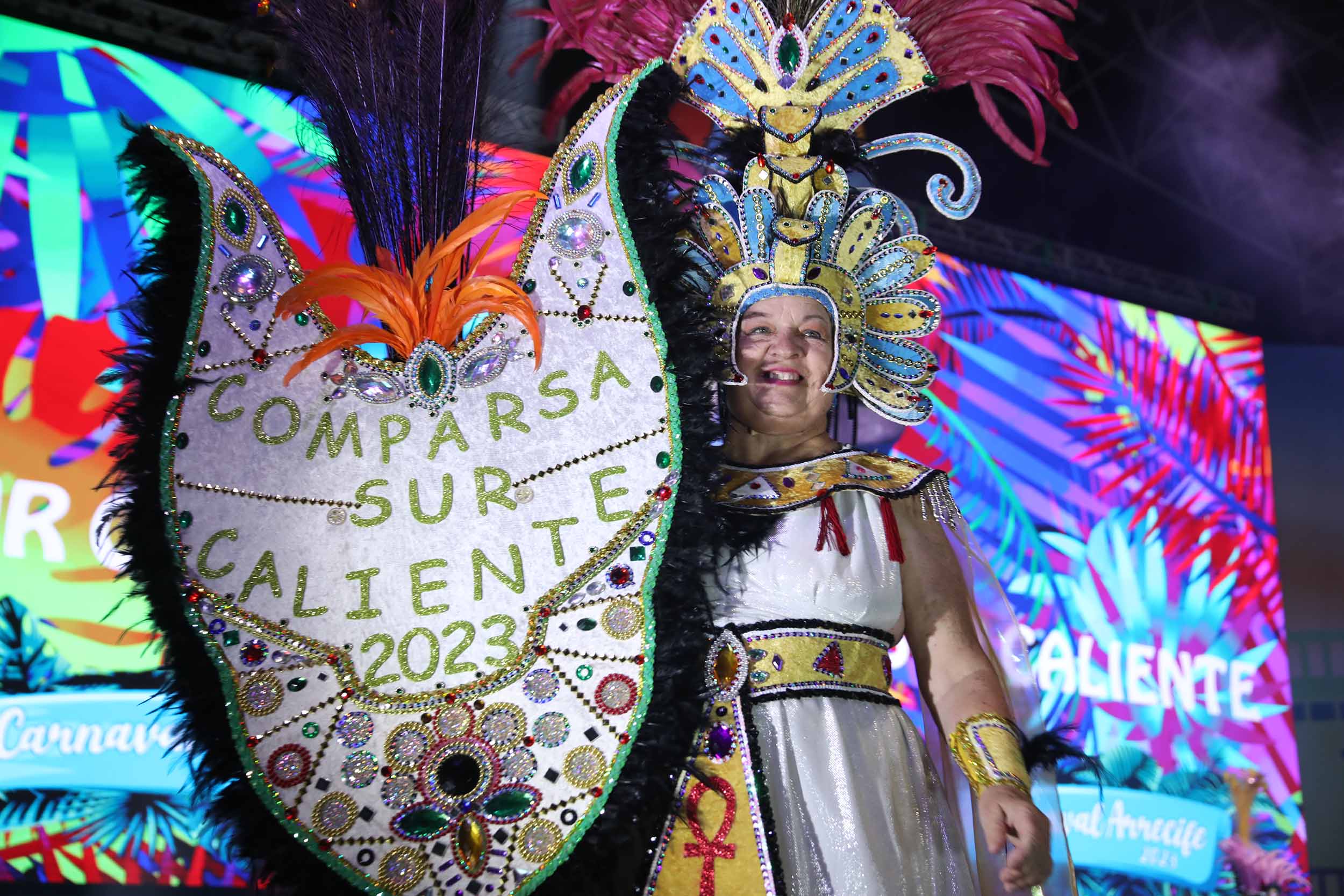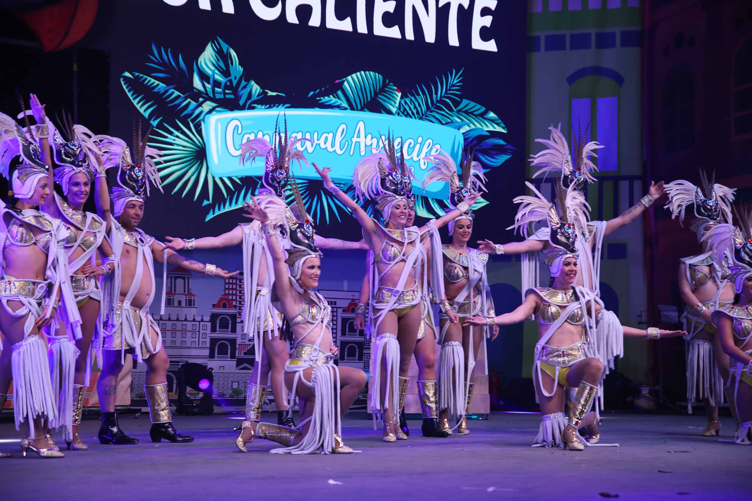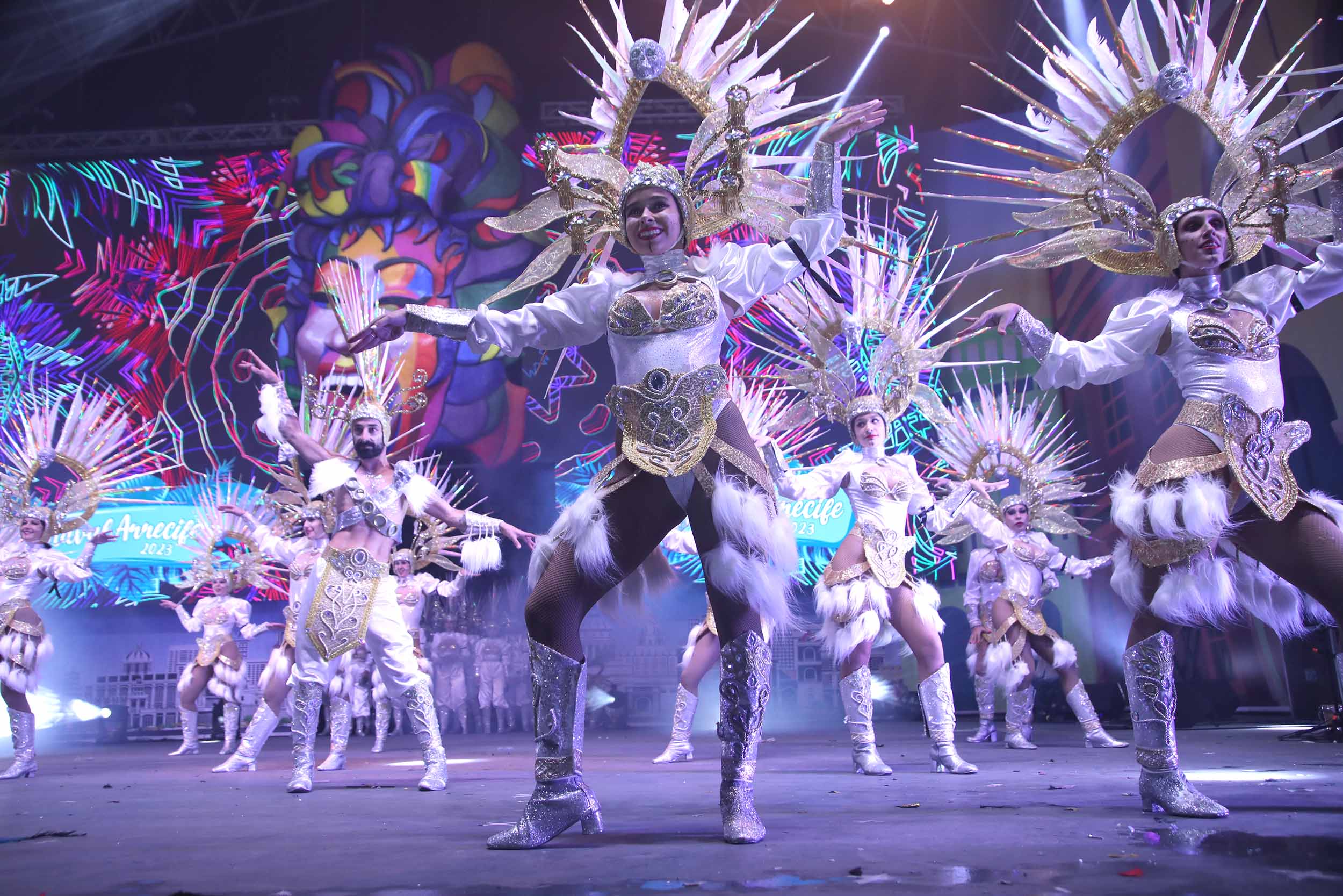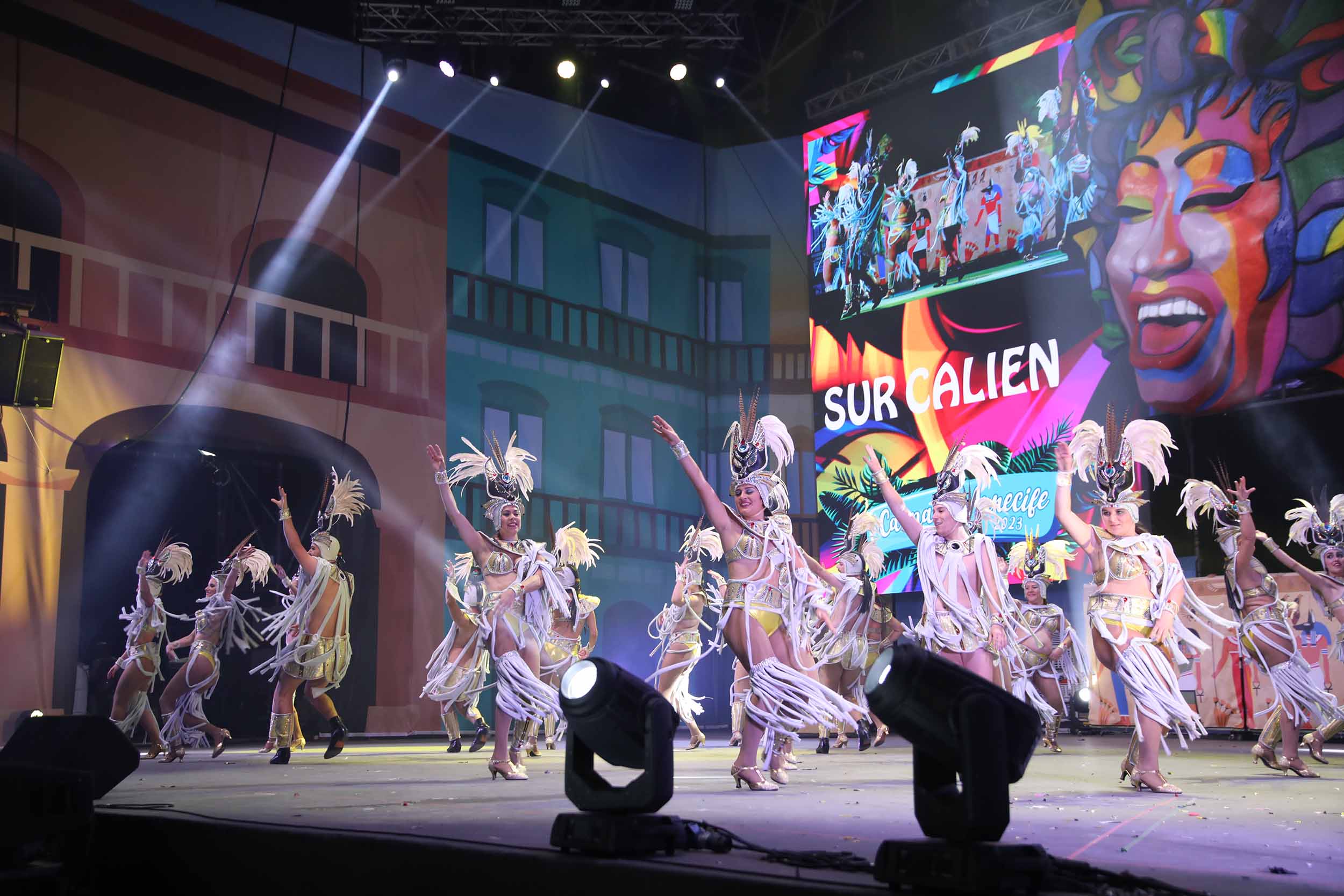 El recinto ferial de Arrecife fue el escenario de una espectacular exhibición de comparsas en el marco de las celebraciones del Carnaval que produjo un estallido de color, música y baile gracias a la participación de las comparsas “Sur Caliente”, “Timanfeiros”, “Guaracheros” y “Cumbacheros”.