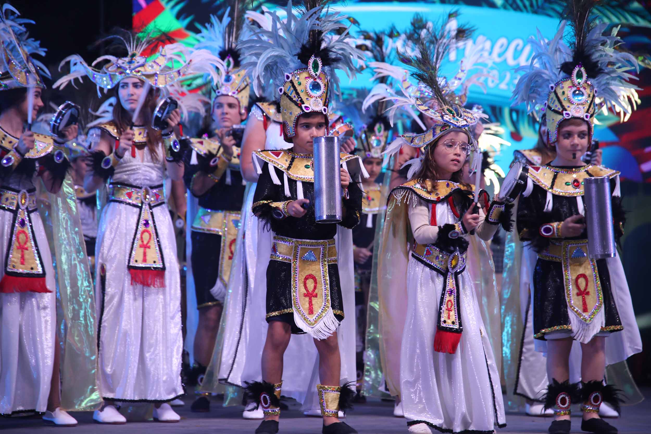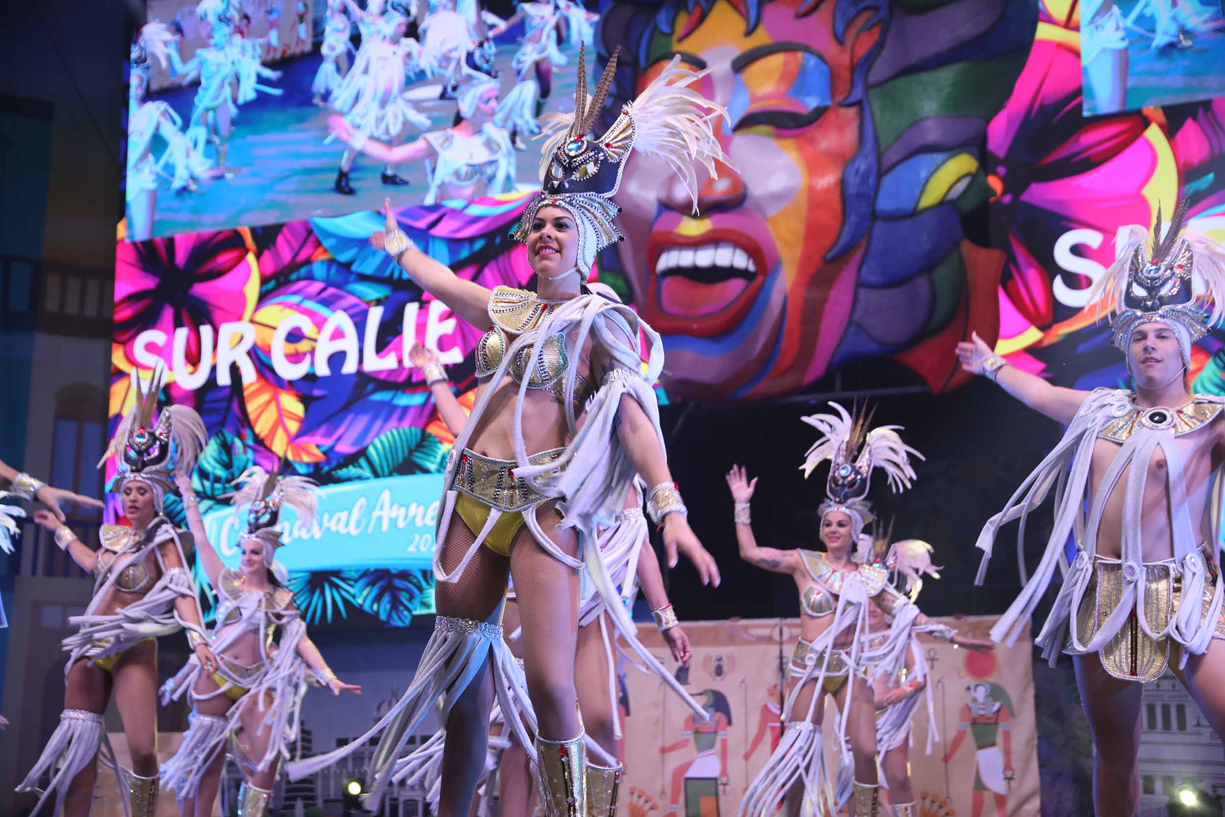 El comienzo del acto sirvió para recordar a “Los Yaiseros”, quinta comparsa de Lanzarote que durante esta edición no ha podido participar en esta exhibición; antes de dar paso a “Sur Caliente”, la agrupación fundada en 1999 y presidida en la actualidad por Pedro Vizcaíno, que también ha sido el diseñador de la fantasía –“La unión del reino de Egipto”–, con la colaboración del diseñador Isidro Castellano, que lucieron con orgullo