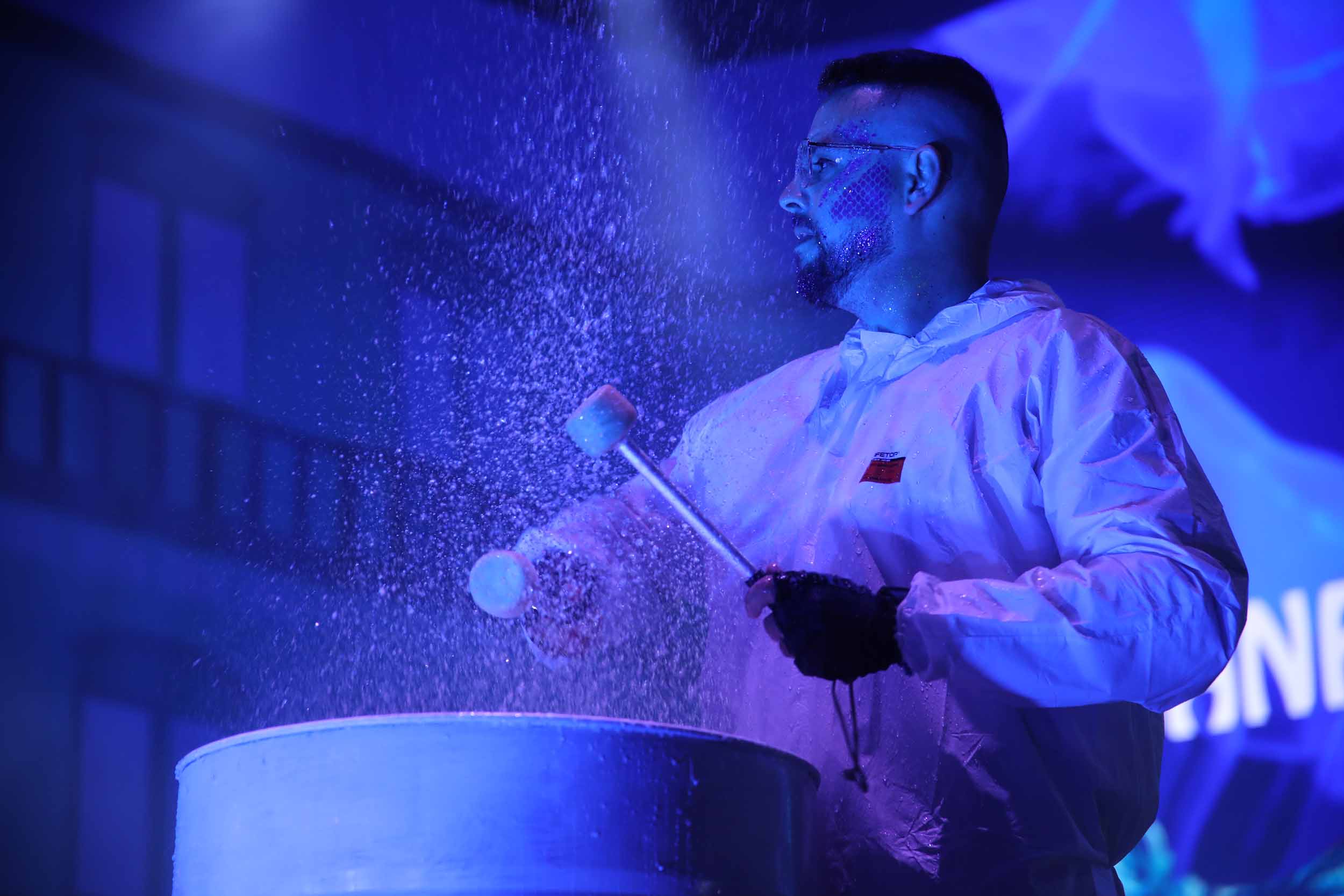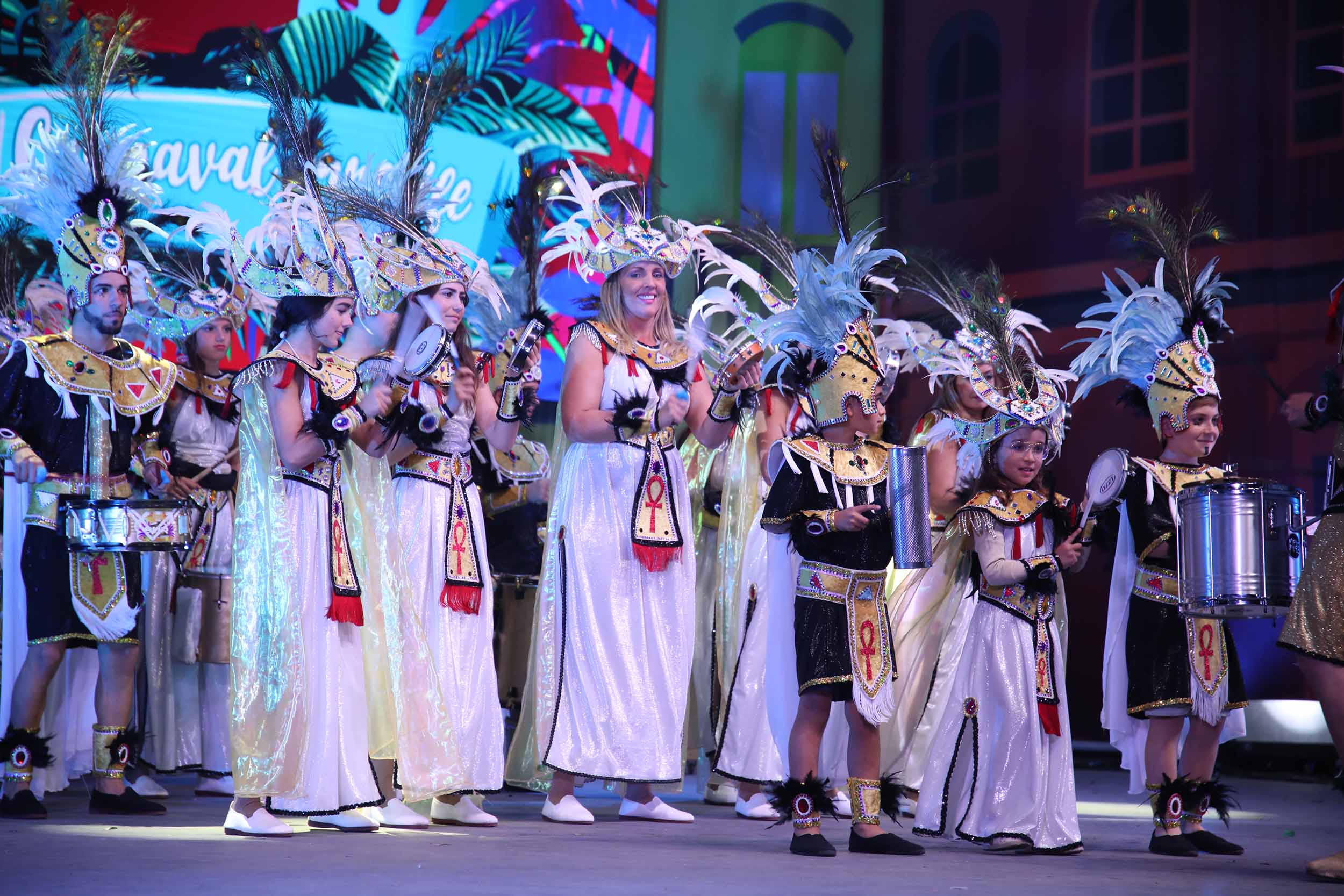 los miembros de esta agrupación compuesta por sesenta componentes que bailaron como posesos las coreografías ideadas por Yeray Alonso al ritmo de la batucada dirigida por Borja Hernández que, de este modo, presentaron el espectáculo denominado “Ahora sí que sí, ya estamos aquí”, como recuerdo de los dos últimos años en los que por distintas circunstancias no han podido participar en el carnaval.
