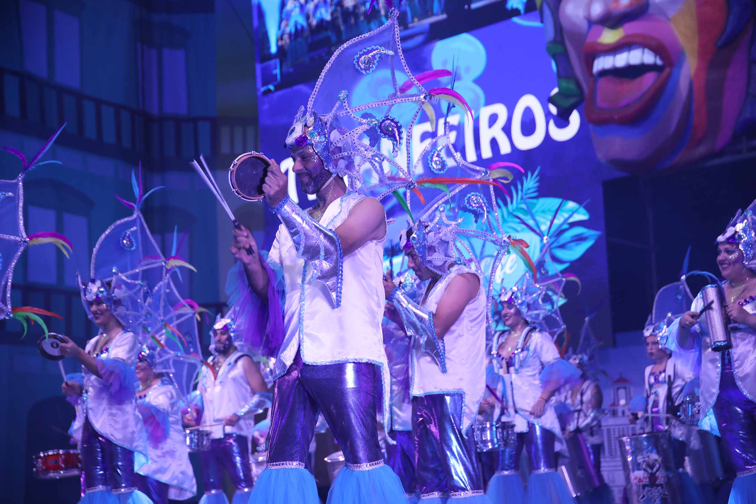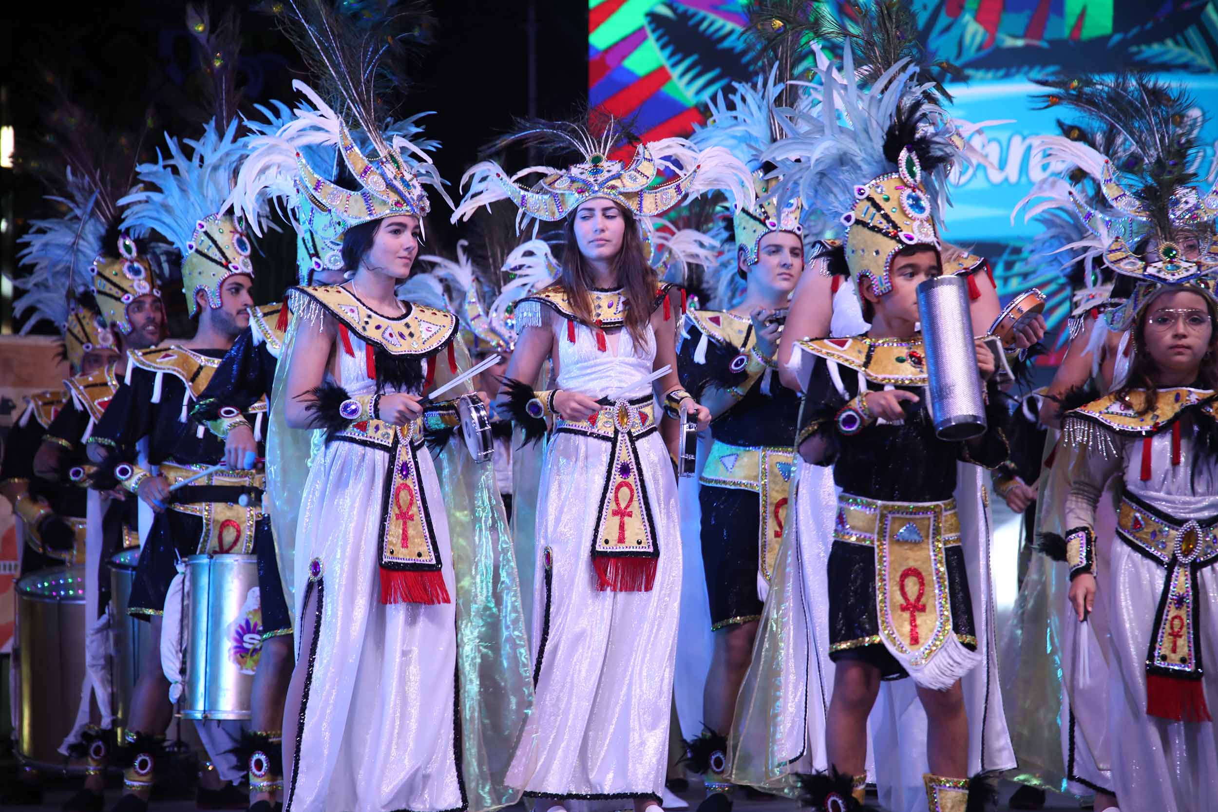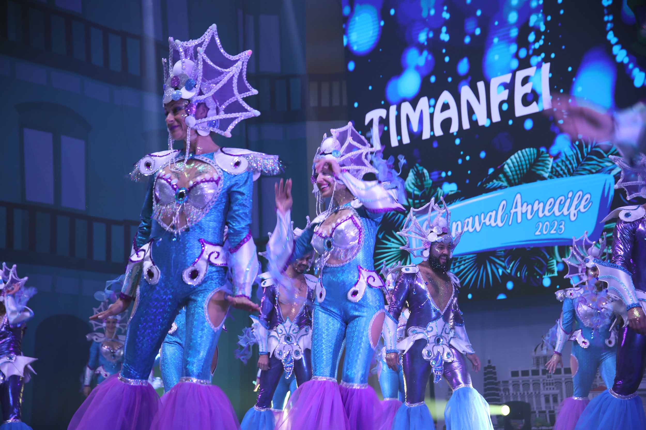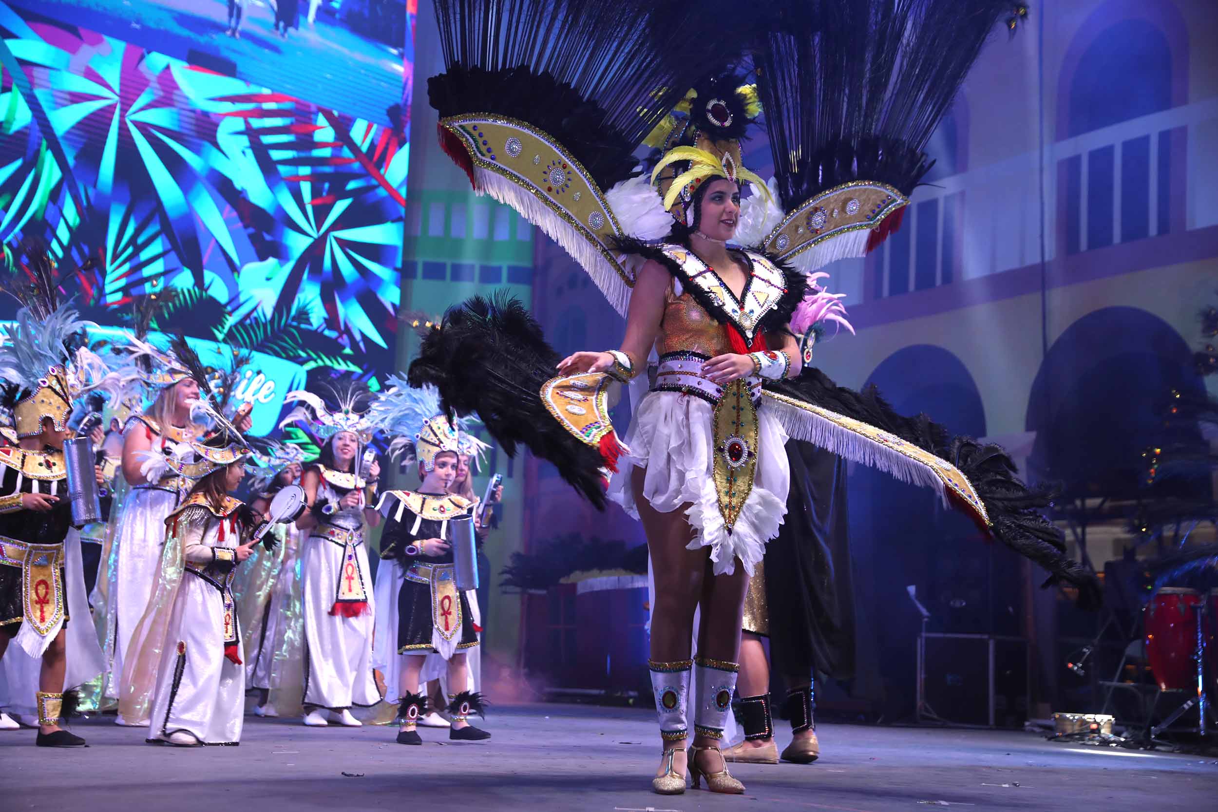 A continuación, fue el turno de “Timanfeiros”, otra de las comparsas más esperadas de la noche. La agrupación fundada en 1996 en la localidad sureña de Uga (Yaiza), logró mantener la energía del público en todo lo alto. La percusión y las voces de sus sesenta y siete integrantes, presididos por Luis Martín, resonaron por todo el recinto ferial, creando una atmósfera mágica y única, al ritmo de la coreografía de Jonathan Gutiérrez y la dirección musical de Willy Morales; exhibiendo un fantástico diseño realizado por la propia comparsa y confeccionado por Blas Noda, con la fantasía denominada “Tangaroa”.