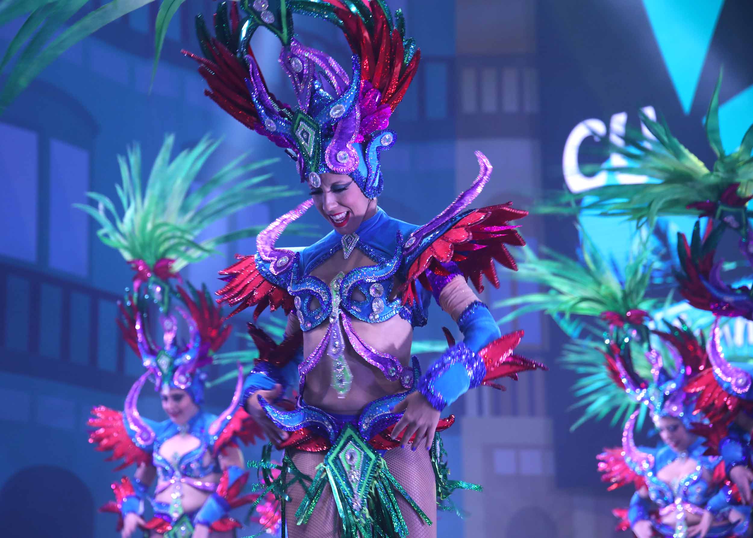 La actuación constituyó un espectáculo impresionante lleno de ritmo, colorido y energía en el que el cuerpo de baile con sus trajes de plumas y sus movimientos sincronizados, lograron hacer vibrar al público desde el primer momento.
