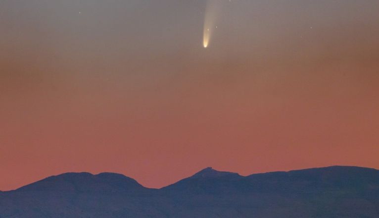 Los mejores días para observar el cometa NEOWISE a simple vista desde Lanzarote (siempre que el tiempo lo permita) serán el próximo viernes 10 de julio y el sábado 11 de julio, en los que se podrá ver antes del amanecer, a partir de las 5.45 hora local. En ese momento el cometa estará en el noreste sobre el horizonte a muy baja altura, casi pegado al suelo, a tan solo 3º de altura, pero irá aumentando de altitud en los minutos siguientes hasta alcanzar unos 12º sobre las 6.30 horas, en que a pesar de seguir ganando altura empezará a “desvanecerse” por el efecto de la luz del sol al amanecer.