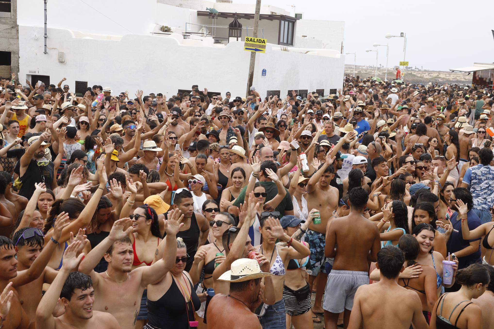 La tradicional verbena del agua pone el broche final a las fiestas en honor a Nuestra Señora del Sagrado Corazón de María en Caleta de Famara. A las 14.00 horas, con la explanada del muelle a reventar de un público impaciente con ganas de fiesta, arrancó la celebración tras escucharse los primeros acordes de la orquesta Banda Nueva.