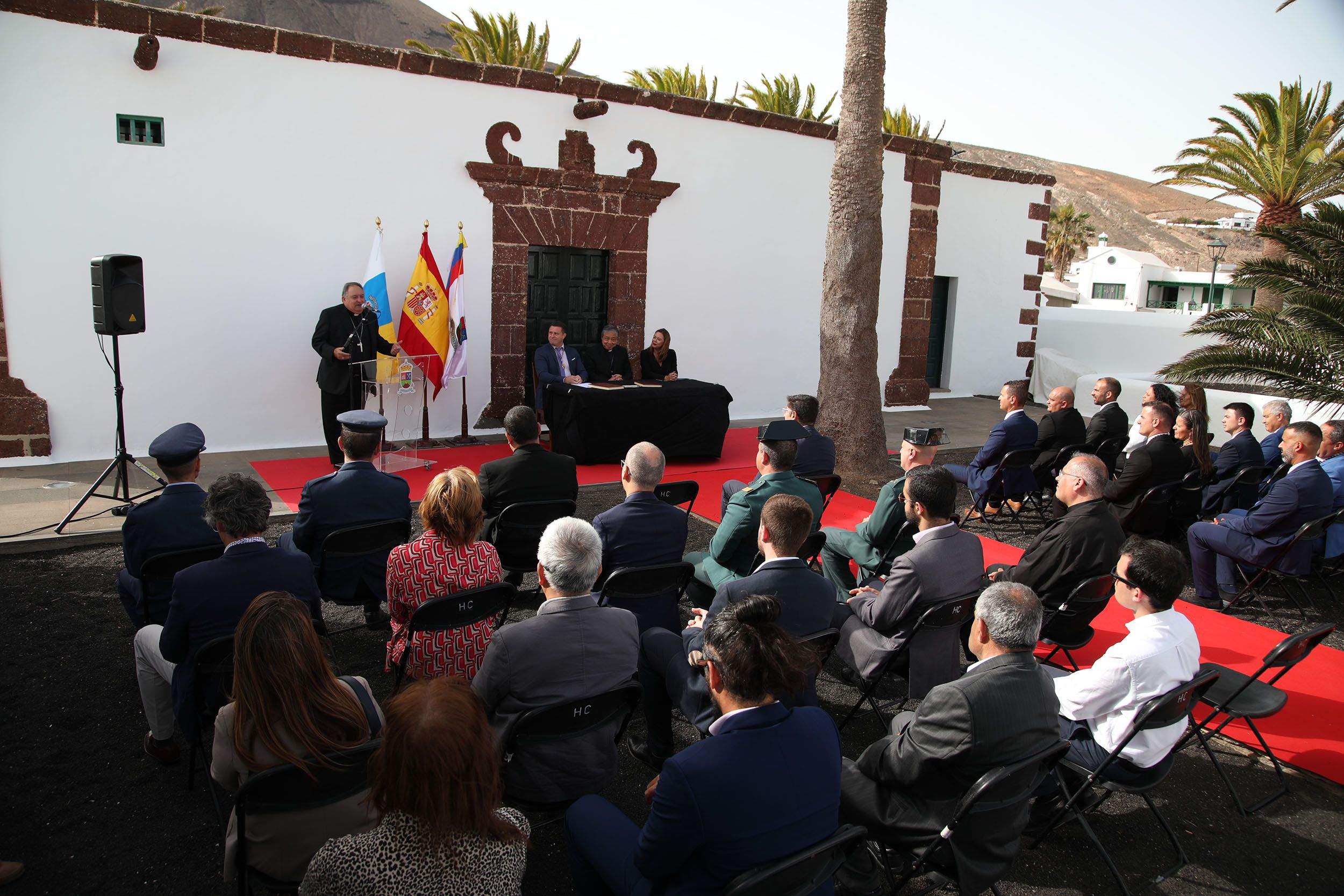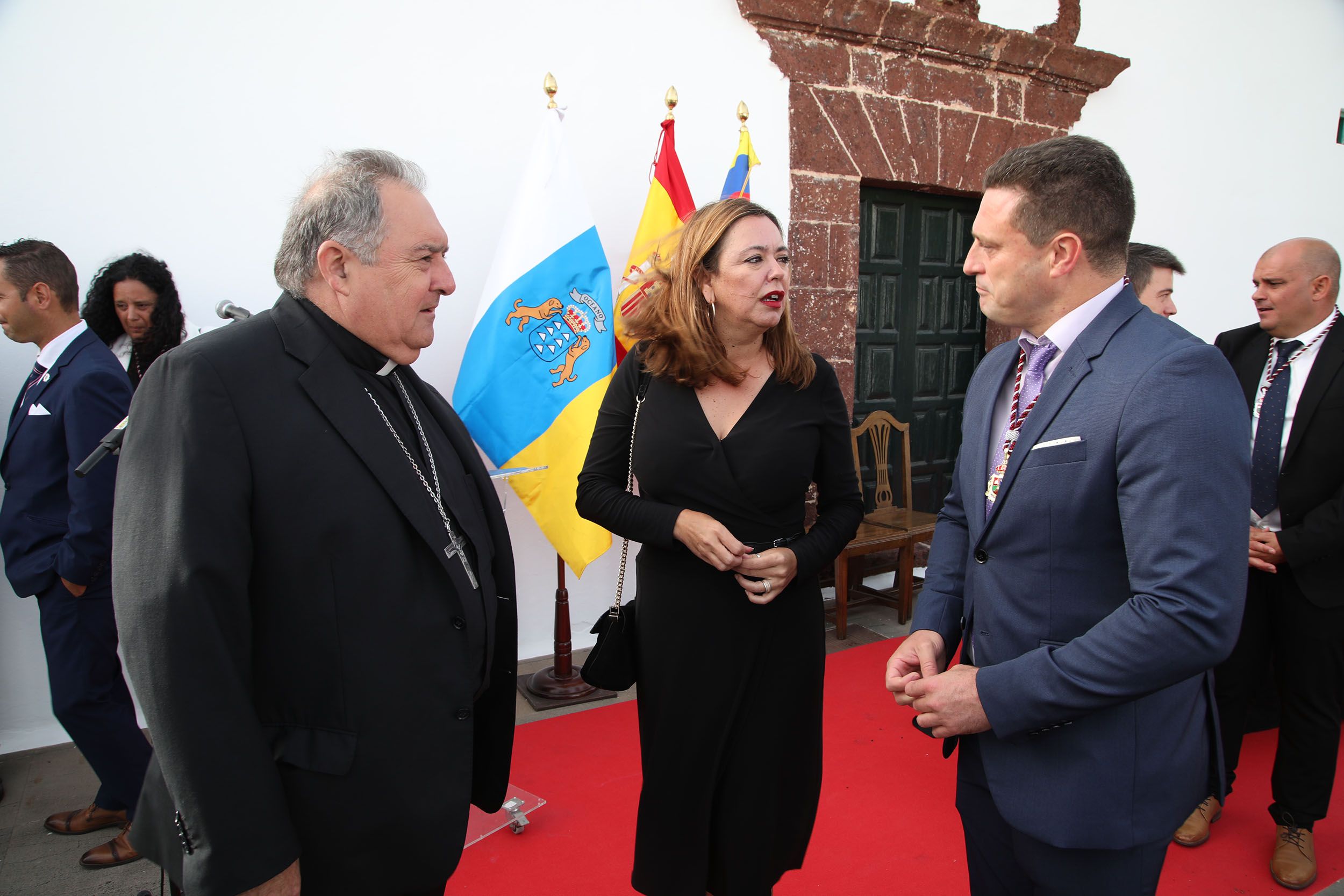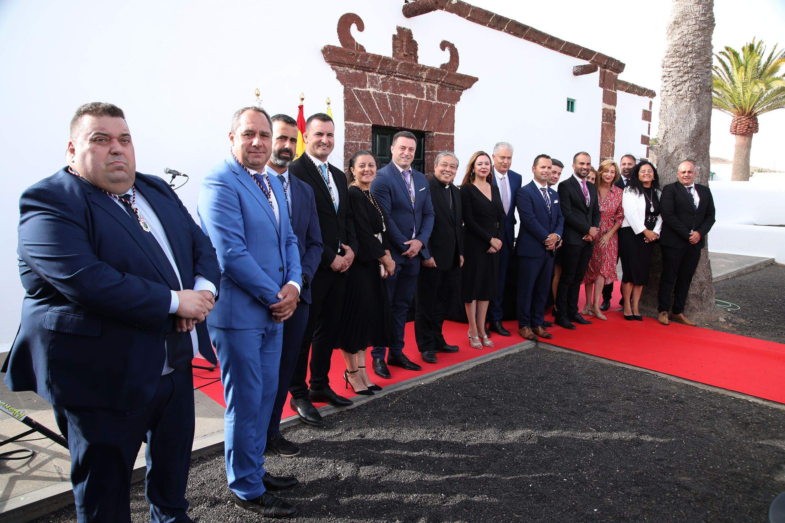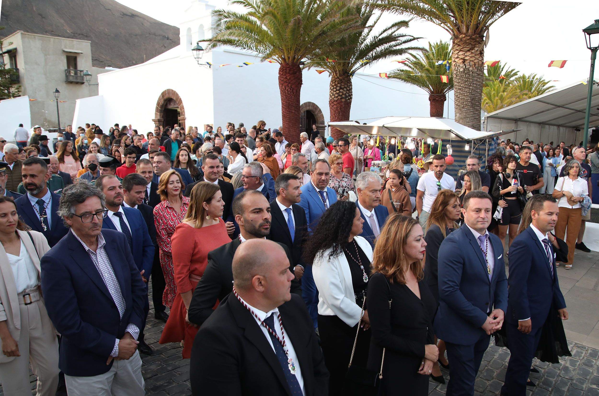 La jornada histórica comenzaba a las 18:00 horas junto a la Casa Parroquial del pueblo, con el acto protocolario de bienvenida por las autoridades municipales con el alcalde de Yaiza, Óscar Noda, encabezando la comitiva. También acudieron la presidenta del Cabildo de Lanzarote, María Dolores Corujo, así como personalidades eclesiásticas, civiles y militares.