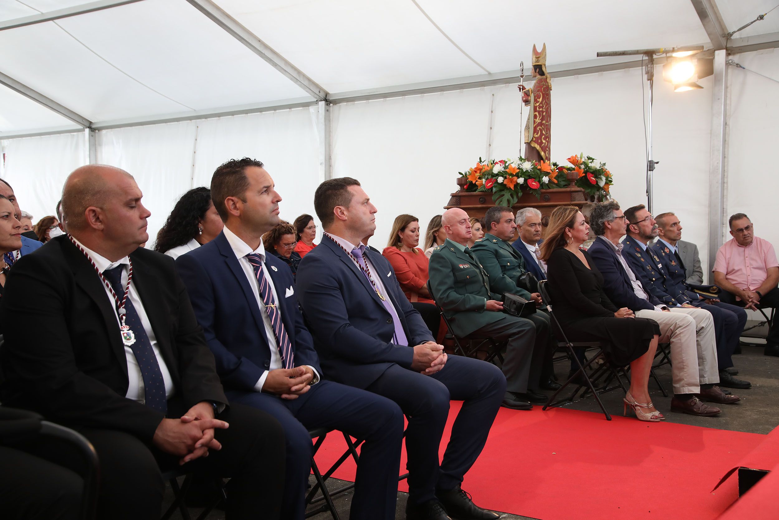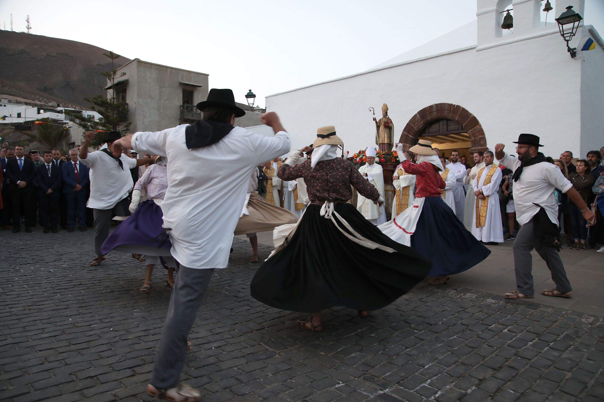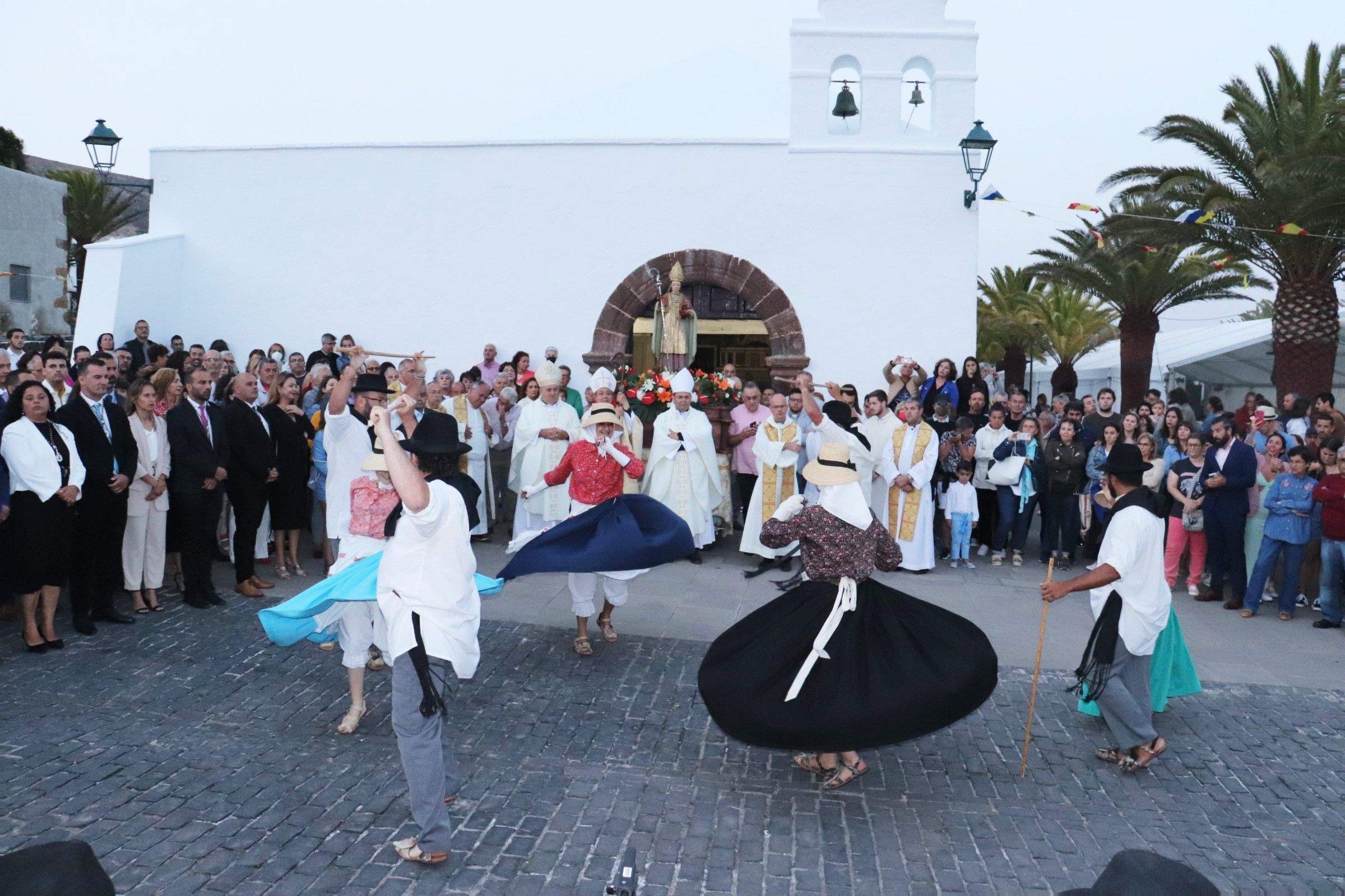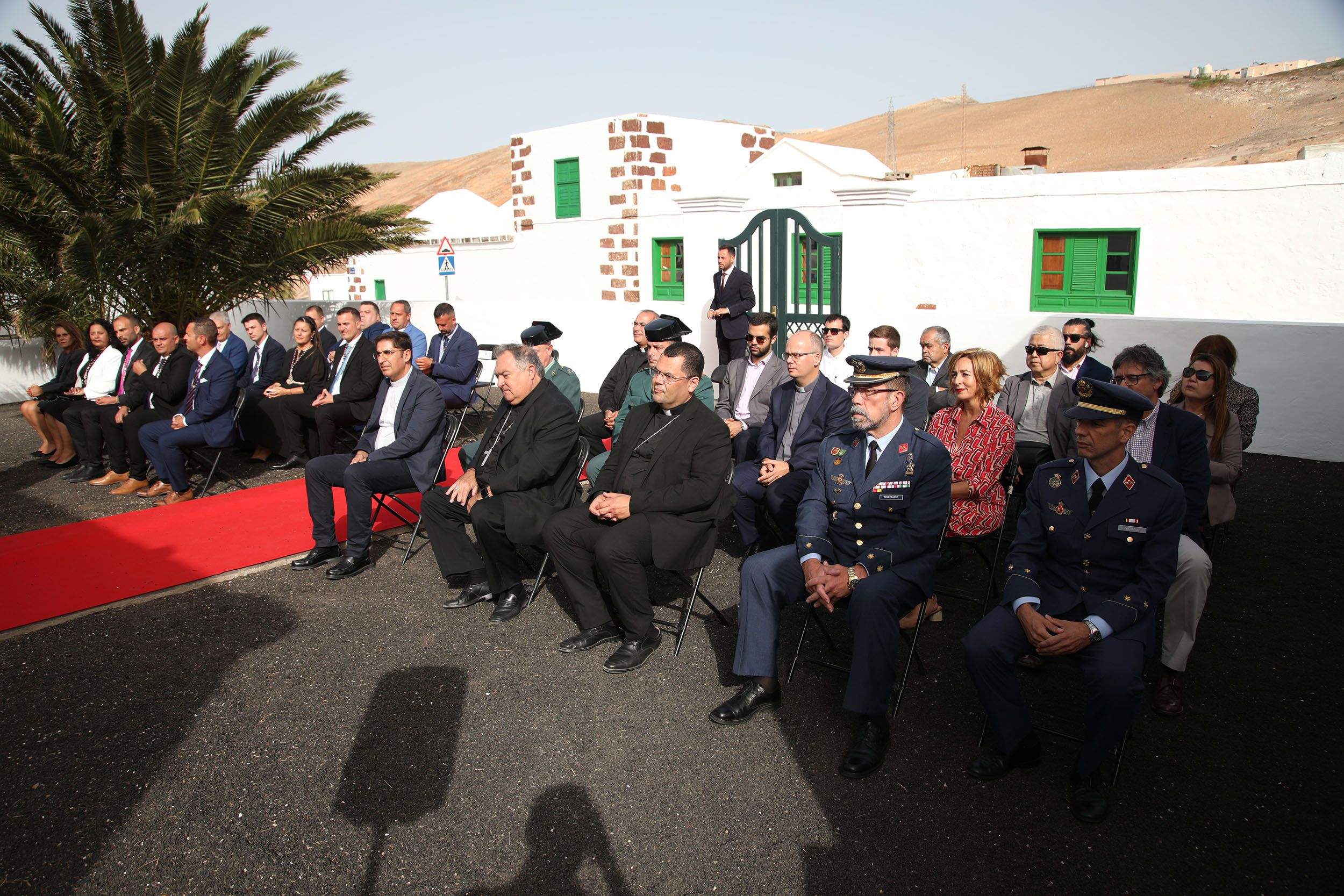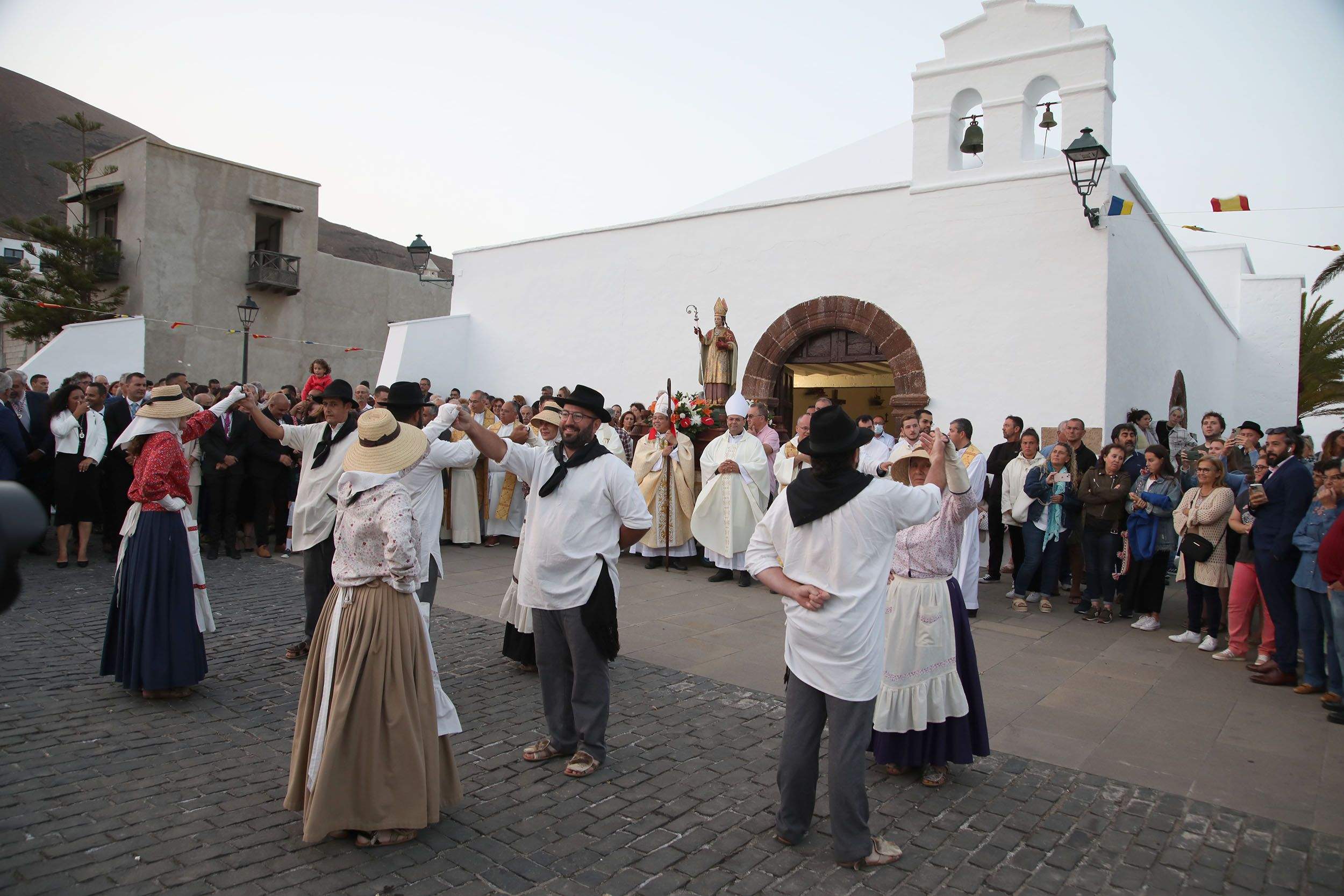 La jornada histórica comenzaba a las 18:00 horas junto a la Casa Parroquial del pueblo, con el acto protocolario de bienvenida por las autoridades municipales con el alcalde de Yaiza, Óscar Noda, encabezando la comitiva. También acudieron la presidenta del Cabildo de Lanzarote, María Dolores Corujo, así como personalidades eclesiásticas, civiles y militares.