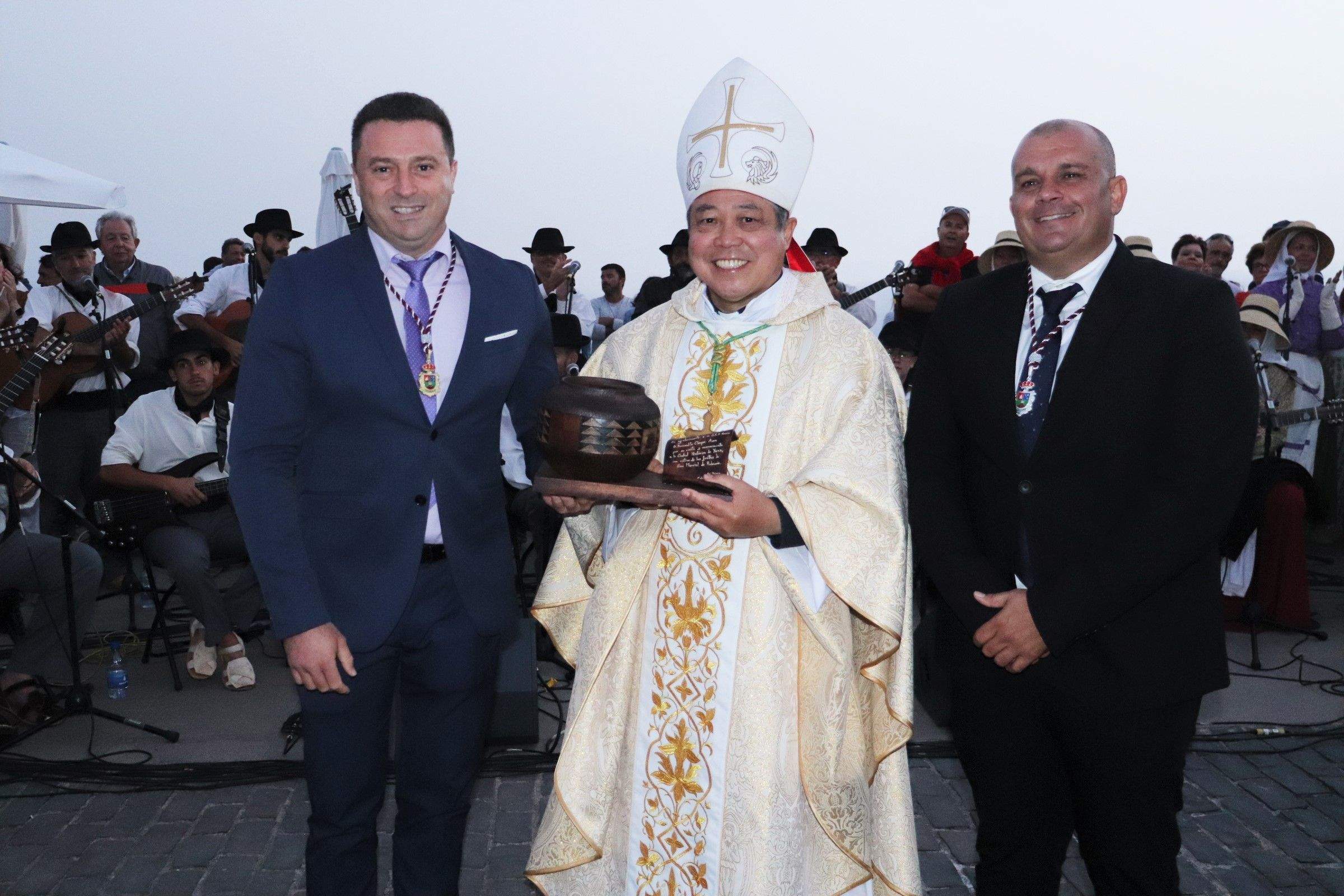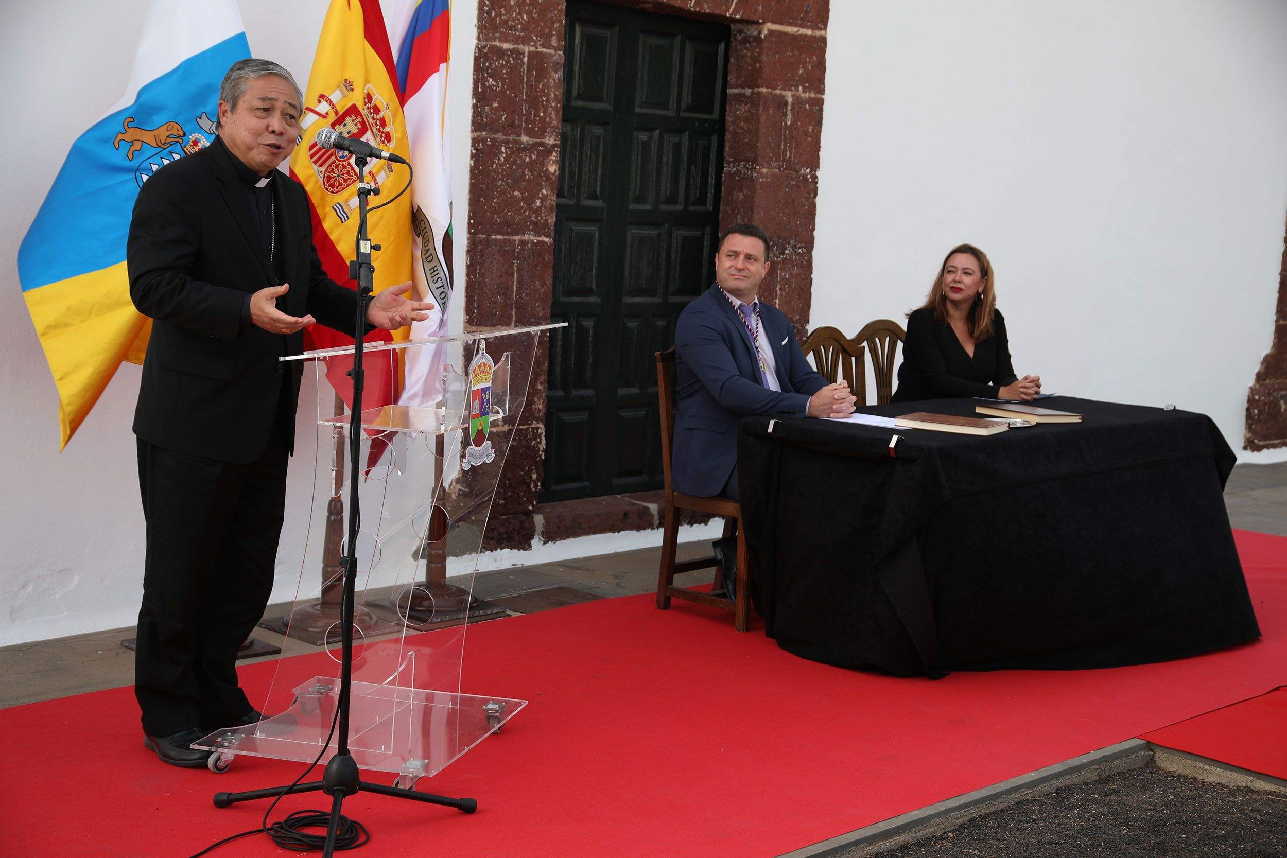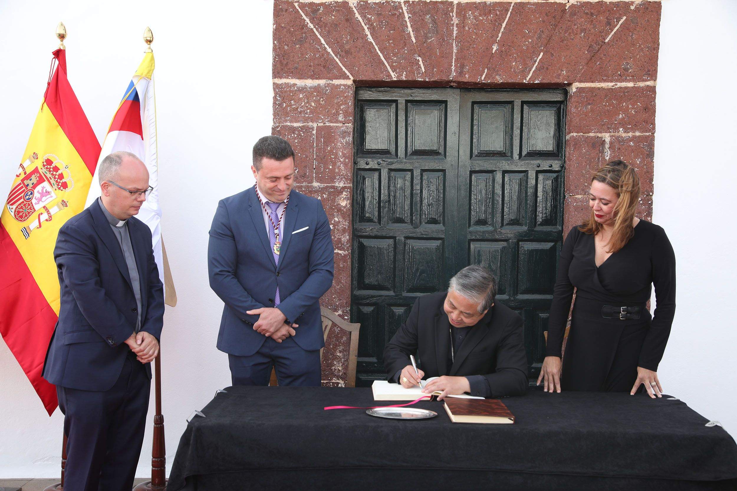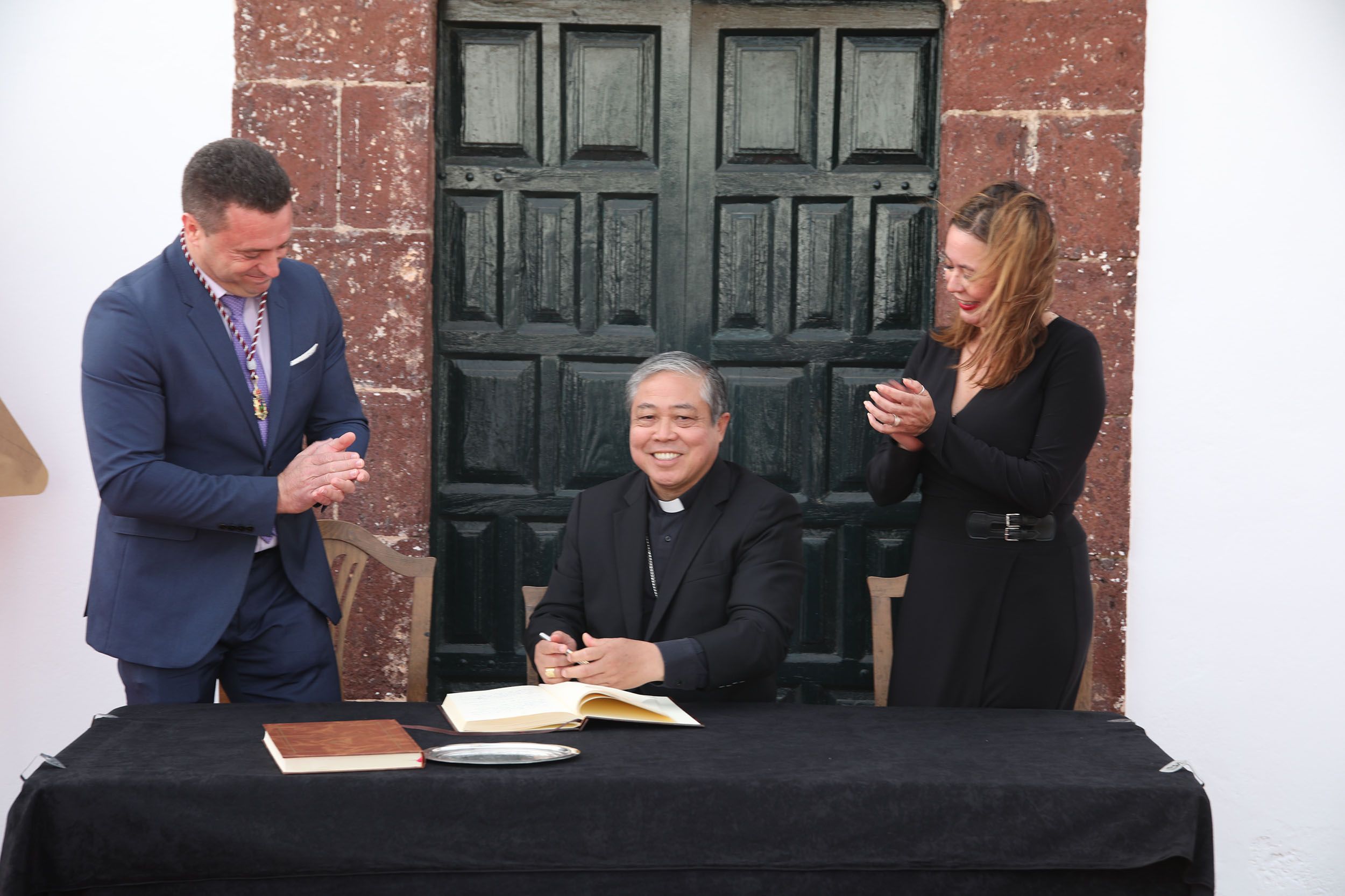 Un acto donde el nuncio apostólico de su santidad, el representante del Papa en España, Bernardito Cleopas Auza, y el alcalde estamparon sus firmas en los Libros de Honor de la Parroquia Nuestra Señora de Los Remedios y del Ayuntamiento de Yaiza, dejando constancia de su primera visita a la isla.