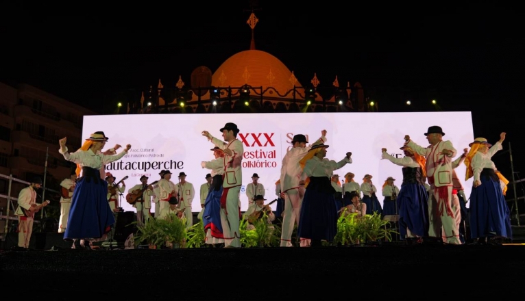 En segundo lugar, subieron al escenario los representantes de la isla de La Gomera, la Agrupación Folclórica Hautacuperche con residencia en San Sebastián. Grupo fundado en el año 1.992 cuenta en la actualidad con 45 componentes distribuidos en los cuerpos de toque y baile dirigidos en la parte musical y baile por Ana Luz Arteaga. La representación Gomera conquistó al público con sus cantos y bailes más representativos como La Polca Gomera, Baile de Tambor, Aíres de Lima o La Jota. Esta agrupación fue declarada por el Ministerio de Cultura como Manifestación Representativa del Patrimonio Cultural Inmaterial. El público premió su actuación con sus aplausos.