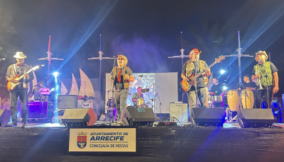 Uno de los momentos más emotivos del pregón fue el agradecimiento a las referencias musicales del barrio y a quienes les apoyaron desde el principio: “Gracias a Jesús, Julio y Aquilino Santana, a Toñín Corujo, y a mi tío Tino ‘el Asfixiado’, eso sí que era rock and roll”, destacó Devora Curbelo.
