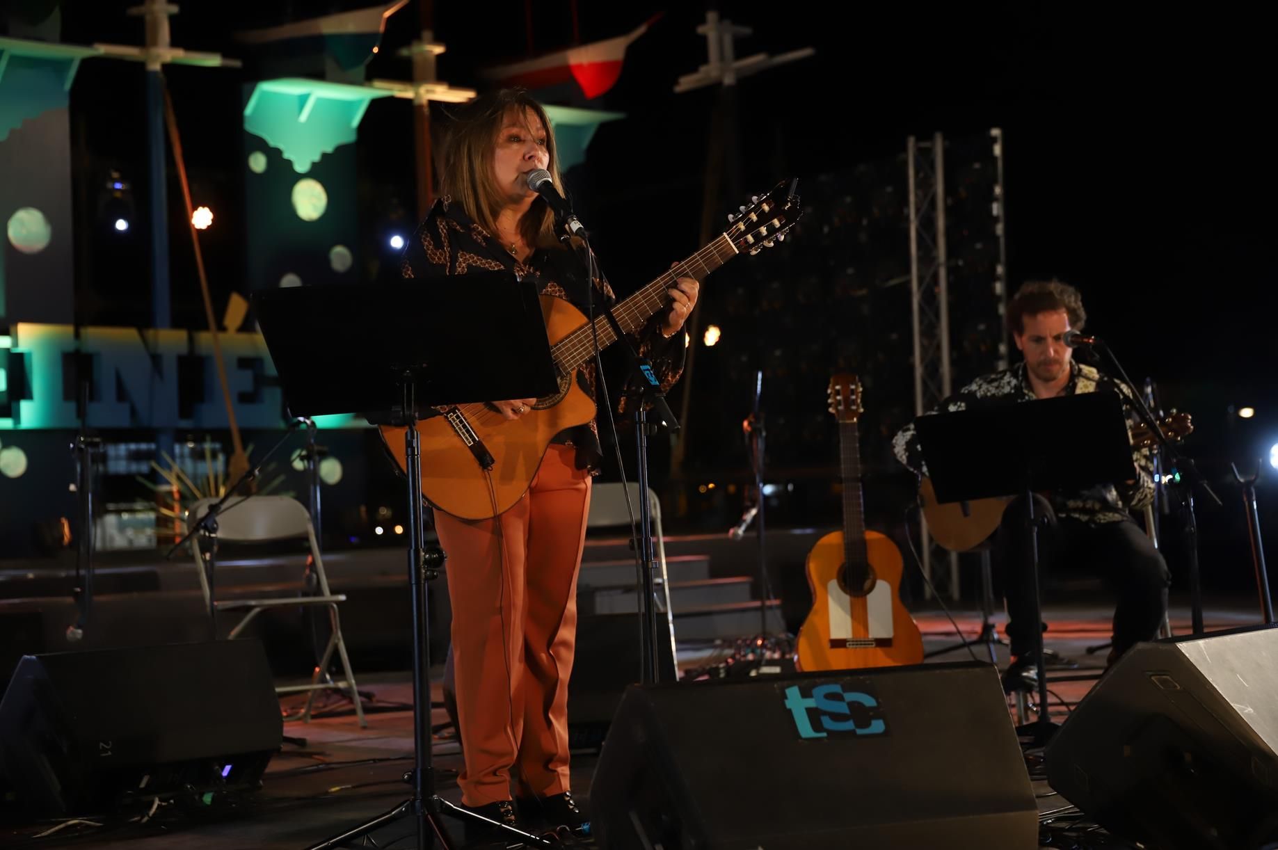 En segundo lugar subió al escenario la compositora, trovadora y cantante hispanocubana Liuba María Hevia, voz elegante, delicada y armoniosa abrazada a su guitarra y acompañada del músico Julián Olivares. Hevia eligió un repertorio donde la habanera fue la protagonista, con temas como Mariposita, La Presa, El Expatriado y Veinte Años, que iba entrelazando también co algunas de las canciones que lleva en el espectáculo "Tantas Vidas", con el que está recorriendo varios países.