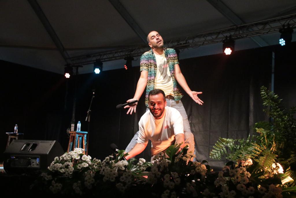 Ambos llenaron con creces el aforo permitido, teniendo en cuenta que el público no se lo pensó dos veces y acudió al acto con ganas de pasarlo bien y olvidar cuanto antes los años de encierro vividos por la Covid-19. Kike Pérez y Aarón Gómez nada más subir al escenario conquistaron al público, que no dejaron de aplaudirles cada una de sus vivencias contadas con una chispa de humor.