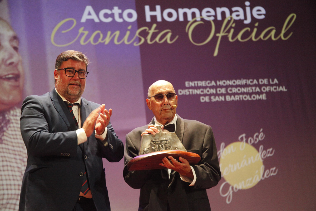 La noche del pasado jueves fue designado Cronista Oficial de San Bartolomé el vecino José Hernández González en un acto llevado a cabo a las 20.00 horas en el Teatro Municipal de San Bartolomé, presidido por el alcalde, Isidro Pérez Martín, autoridades, familiares y amigos del cronista, que estaba muy emocionado y agradecido con los asistentes, a los que saludó personalmente.