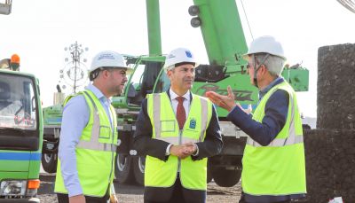 El presidente, Oswaldo Betancort, y el vicepresidente y responsable de Obras Públicas, Jacobo Medina, visitaron los trabajos de instalación en la rotonda de Tahíche en la mañana de este martes, donde trabajaron técnicos e instaladores del Cabildo y bomberos del Consorcio de Seguridad y Emergencias de Lanzarote.