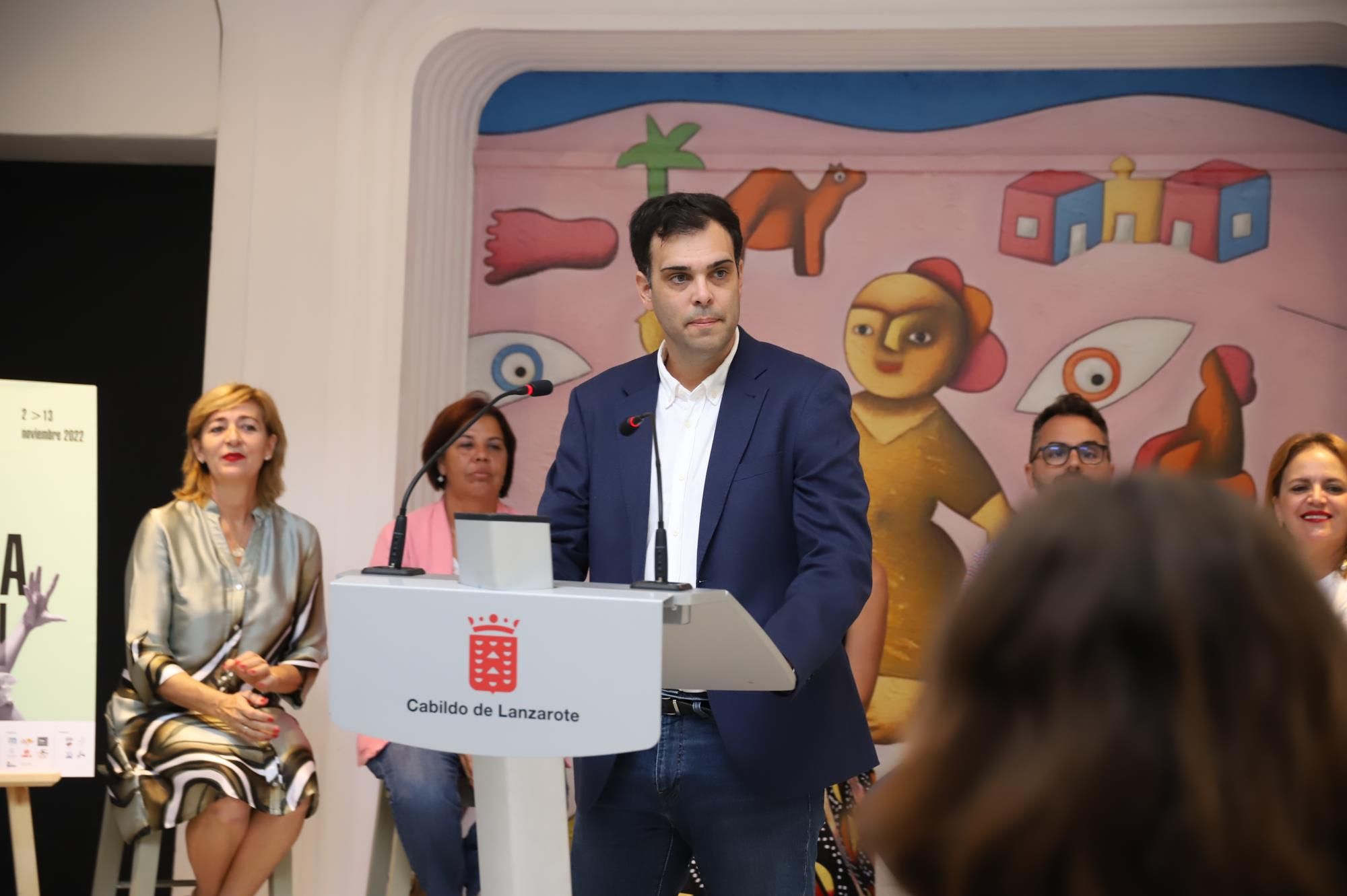 Además del consejero de Cultura del Cabildo de Lanzarote, Alberto Aguiar, en la presentación han intervenido la bailarina y directora del festival, Acerina H. Toledo, la concejal de Cultura del Ayuntamiento de San Bartolomé, Alma González, la concejal de Cultura del Ayuntamiento de Teguise, Nori Machín, la concejal de Cultura del Ayuntamiento de Tías, Pepa González, y Echedey Eugenio, en representación del Ayuntamiento de Arrecife.