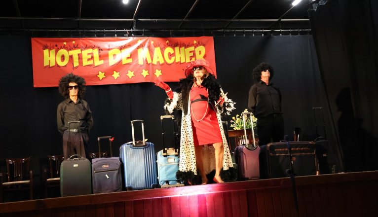 La obra titulada El Hotel de Mácher - A la orilla del Mar, una producción propia del director del grupo de teatro Jonathan Ramírez, contó con la participación de unos 14 actores y actrices.