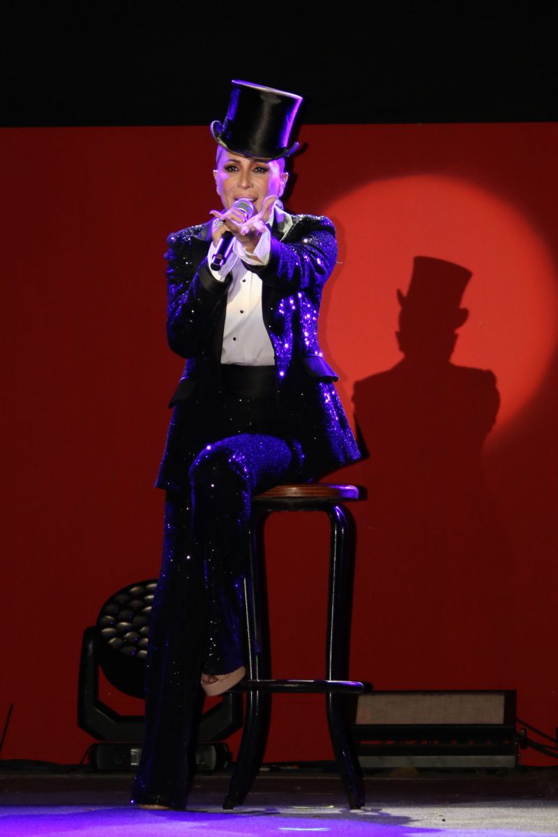 El espectáculo que trajo al sur de Lanzarote, ‘A solas’, es un repaso de sus 37 años de carretera artísica, en un concierto que describe como "minimalista". Solo la acompañaron dos voces femeninas y una gran interpretación al piano, para dar vida a temas tan conocidos como ‘Desesperada’, ‘Moja mi corazón’, ‘Dime la verdad’, ‘Colgando en tus manos’ y ‘Soldados del amor’, su aliento mítico a las tropas españolas junto a Olé, Olé a principios de los noventa.