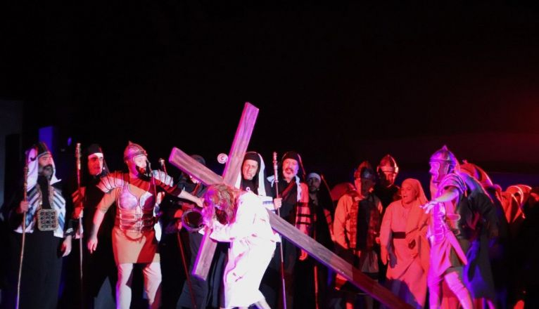 Poder, política, traición y fe, son los ingredientes de esta historia que regala quizá su mayor sorpresa cuando del fondo del escenario, en su espacio más alto, se levanta fluidamente la cruz con el Mesías crucificado. Antes, el público palpó, arrastrado por el arte, la llegada de Jesús a Jerusalén, las artimañas para capturarlo y la estrategia seguida para convencer a los romanos de que debía morir crucificado.