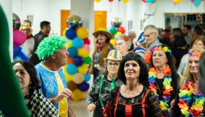 Desde primeras horas de la tarde, el salón del centro se llenó de disfraces originales y creativos: presos y vaqueros compartieron pista con bailarines, personajes del cine, grupos tematizados, mascaritas clásicas y un sinfín de propuestas que demostraron la implicación y el entusiasmo de los usuarios y usuarias del centro. Hubo disfraces individuales y también en grupo, todos ellos preparados con mimo para una cita que ya se ha convertido en una de las más esperadas del calendario festivo.