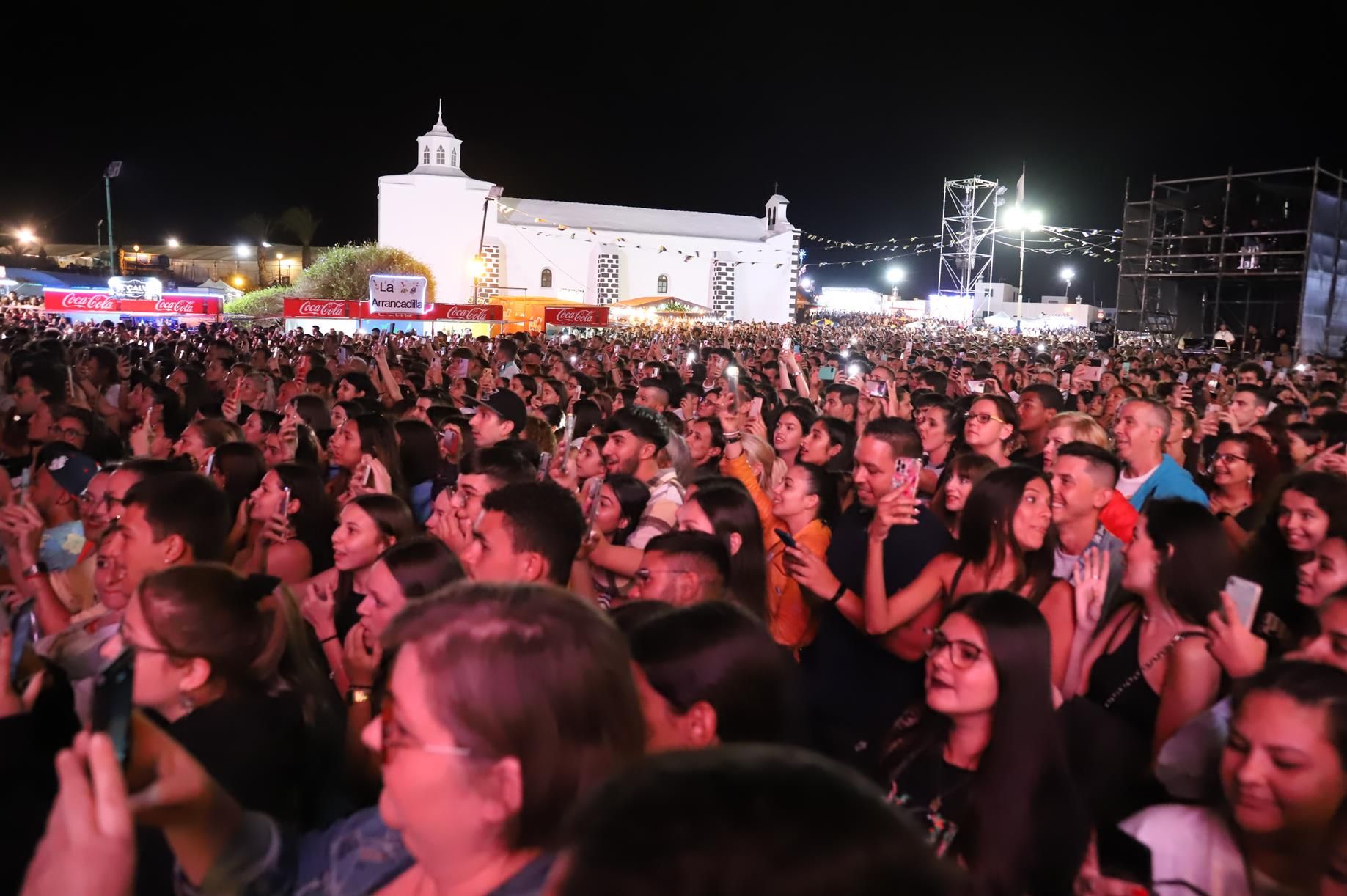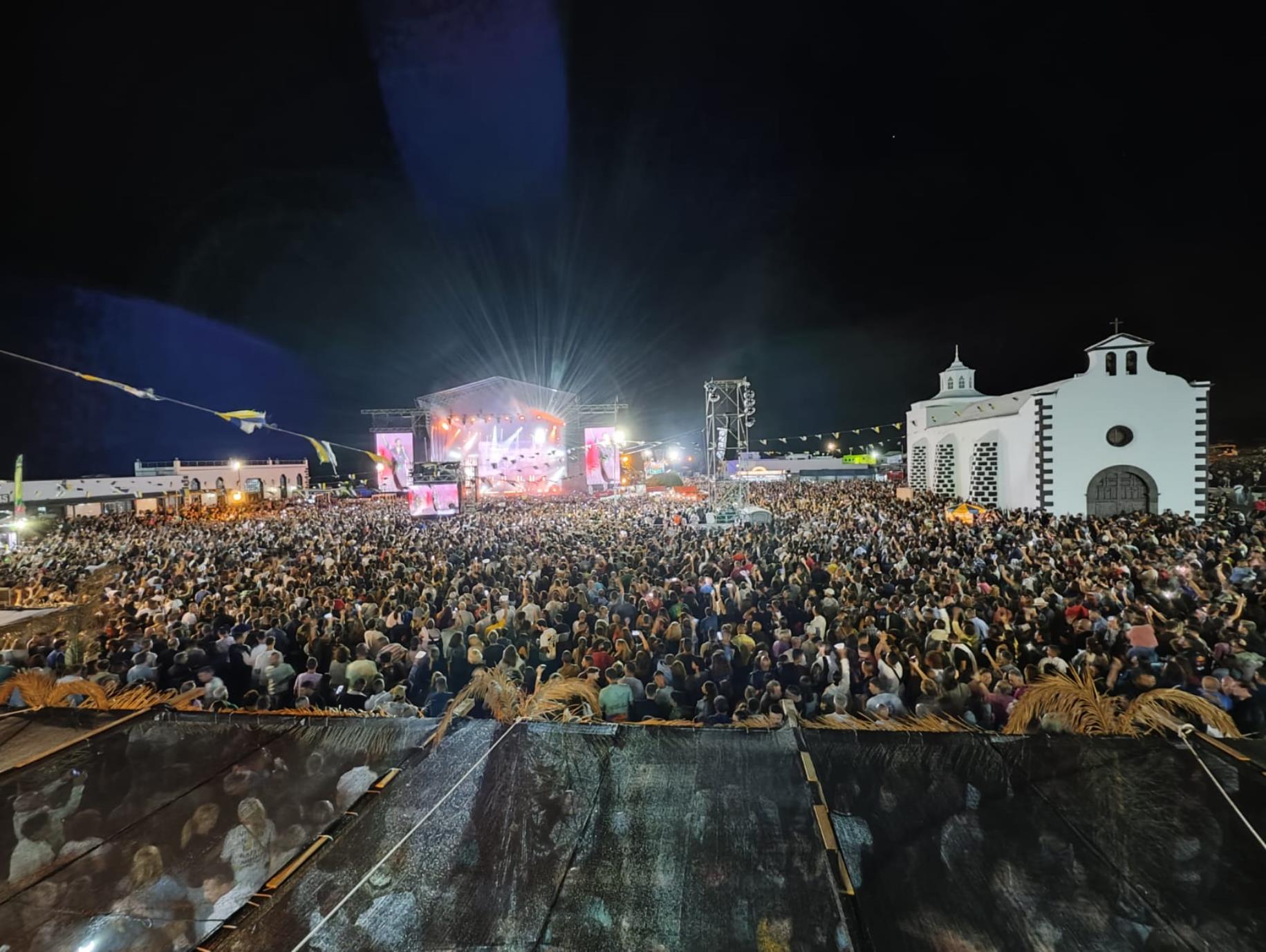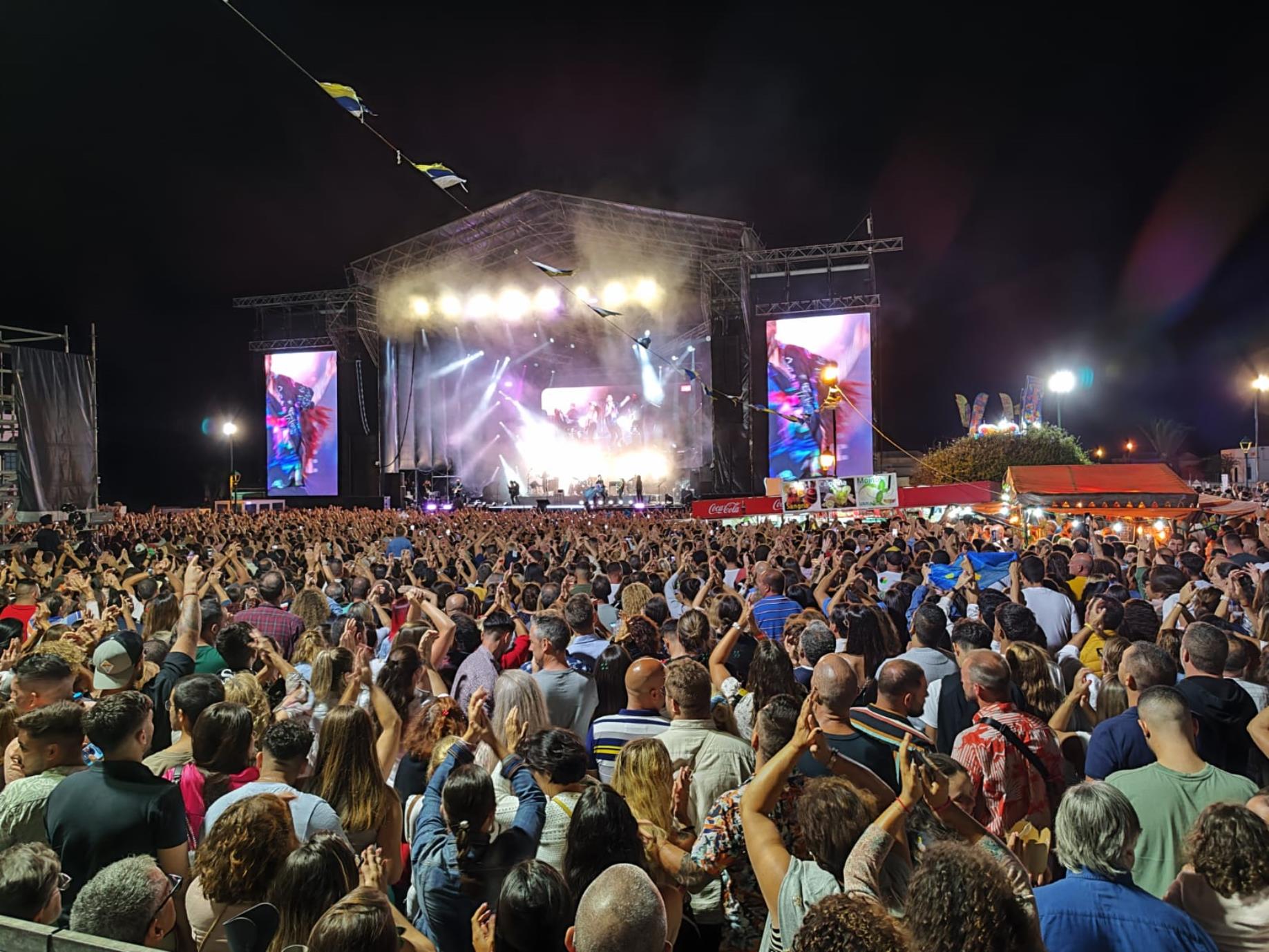 El concierto de Melendi rompió todas las previsiones de asistencia, con miles de personas en la plaza de la ermita de Mancha Blanca y alrededores, en una Lanzarote que se volcó con el cantante asturiano.