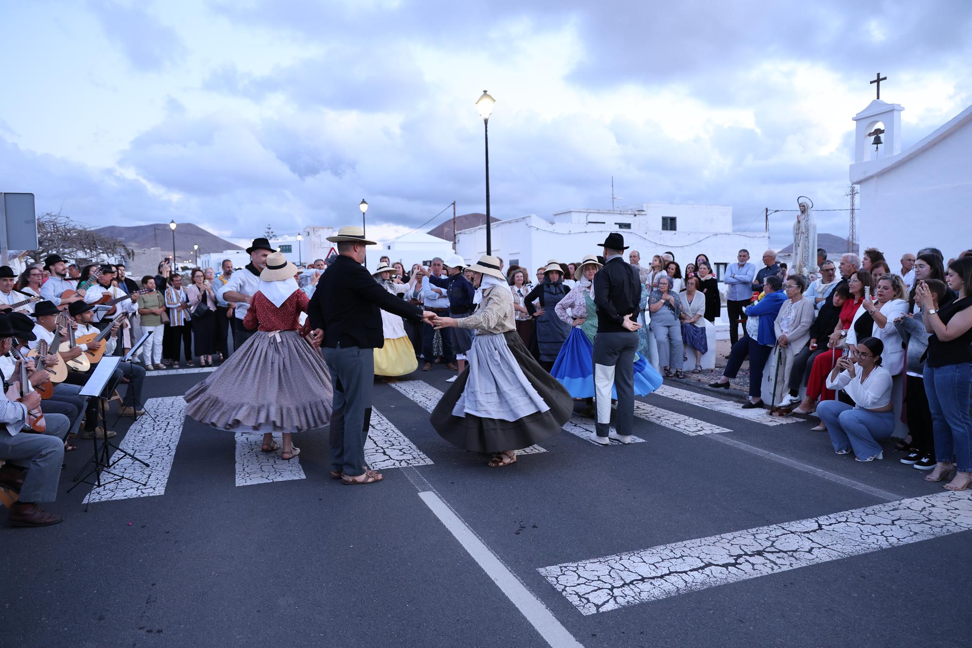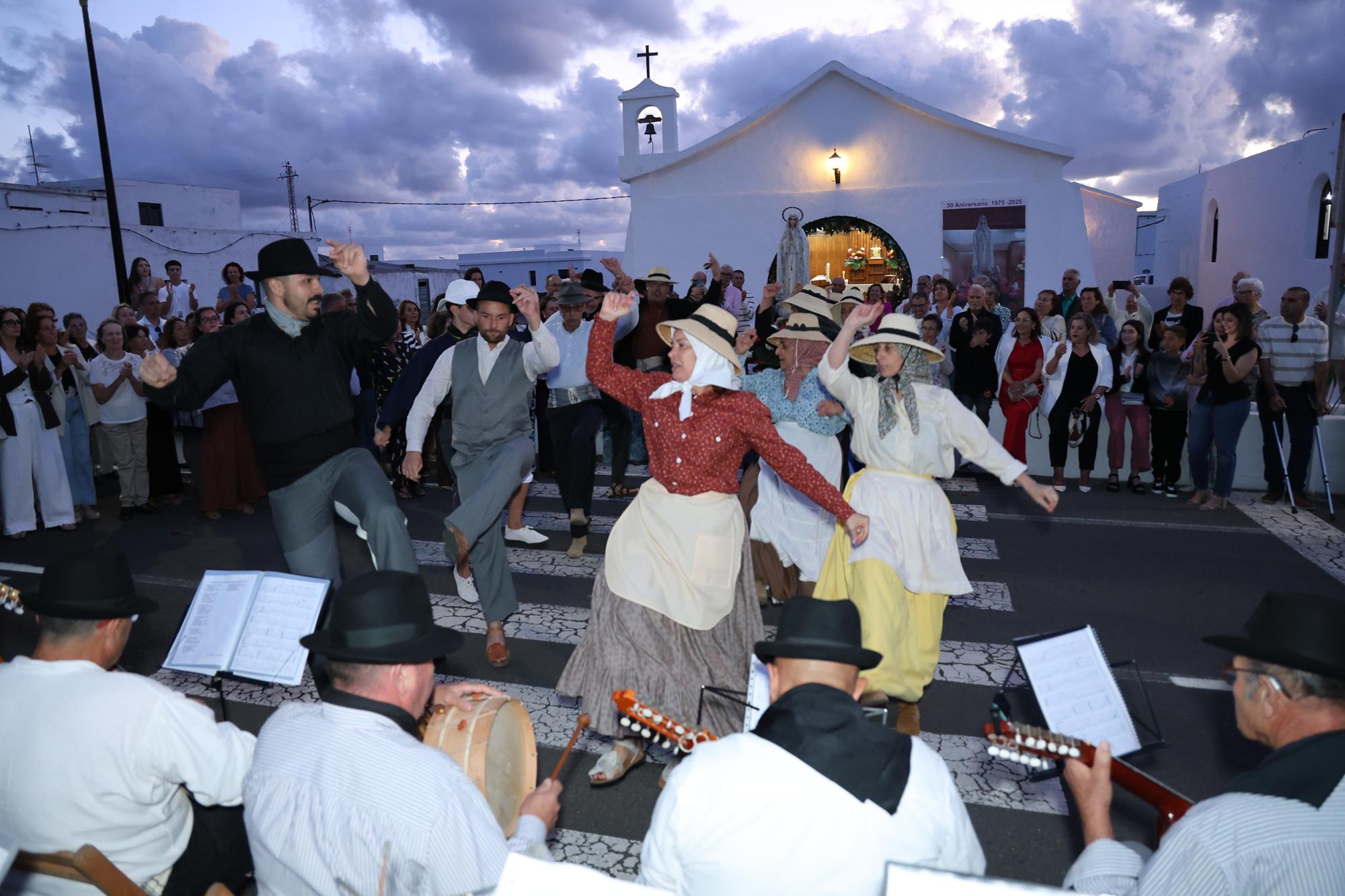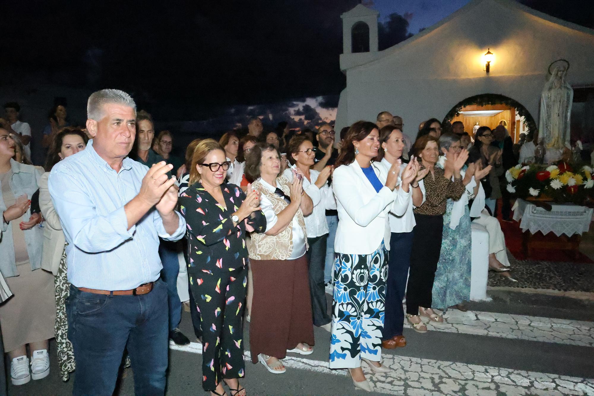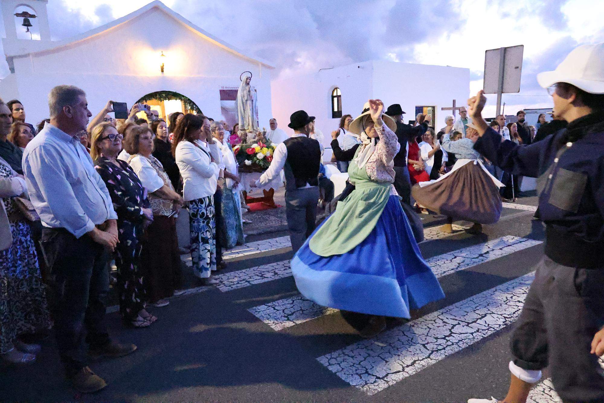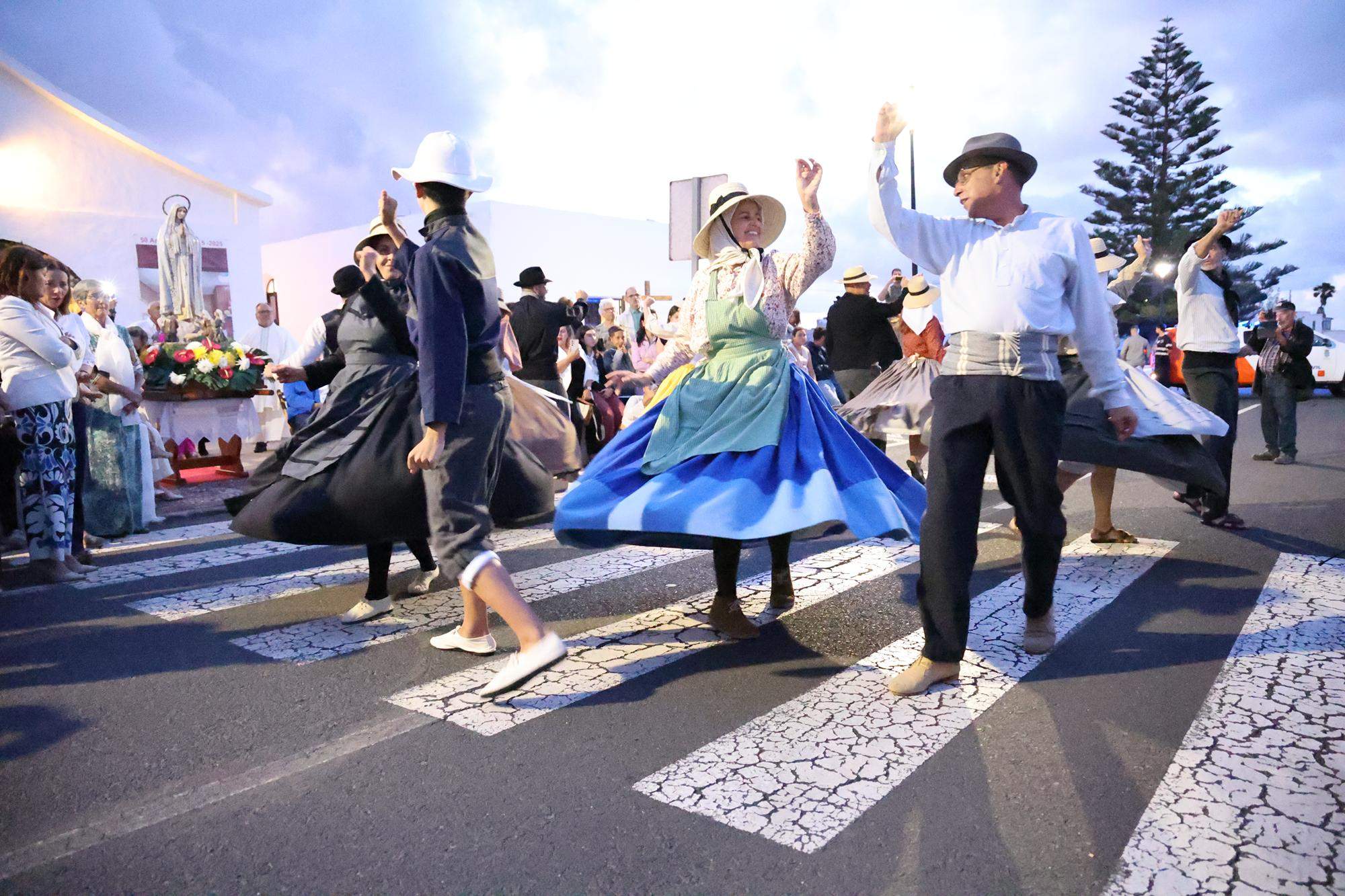Al regreso, y en plena carretera junto a la imagen de la Virgen, un grupo de vecinos del pueblo, mujeres y hombres se unieron formando una agrupación de toque y baile interpretando, folías, isas y seguidillas. Finalizaron con una canción dedicada a Nuestra Señora de Fátima interpretada por Vanessa Rijo y arropada por Clotildo Martín.