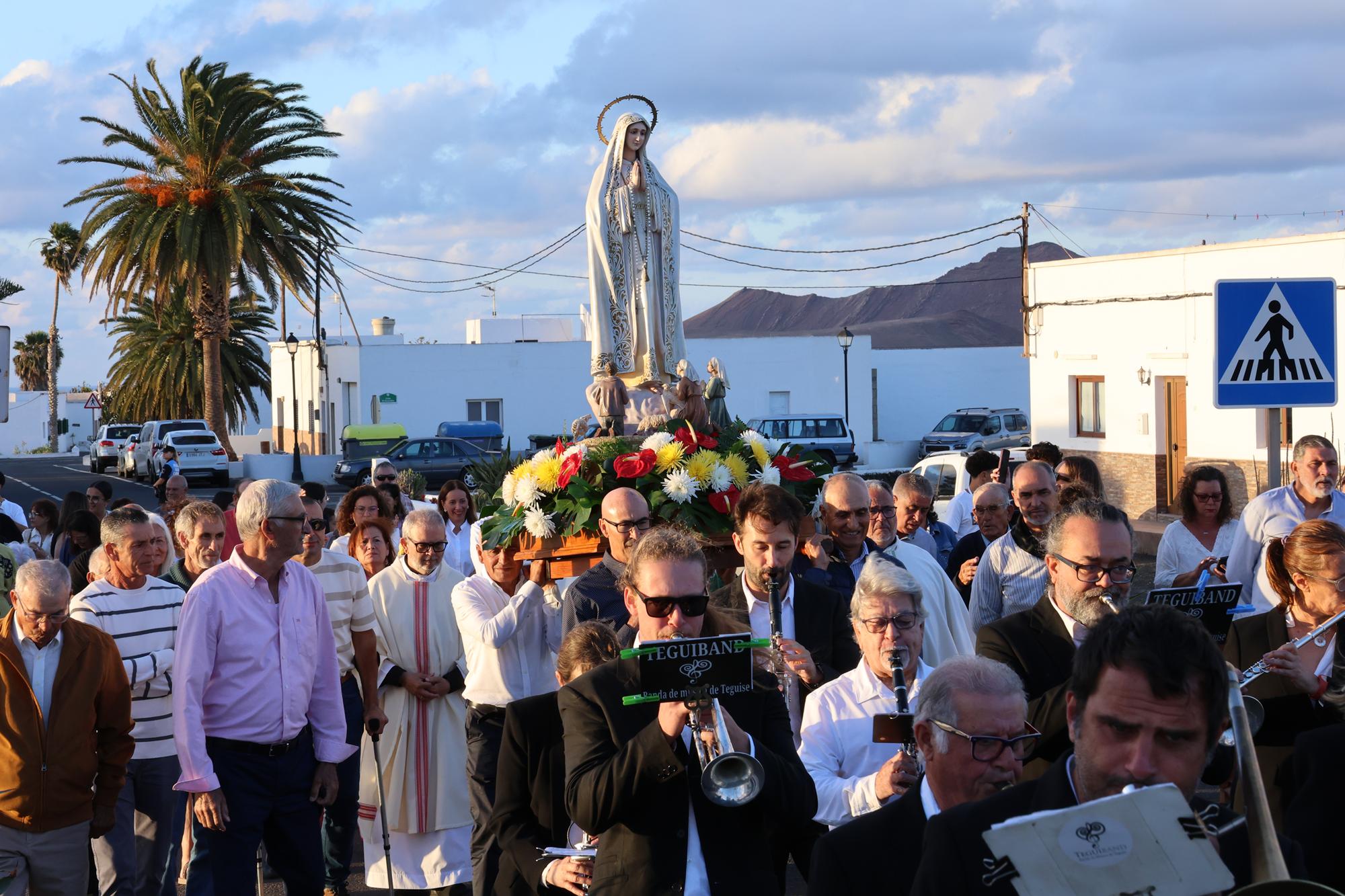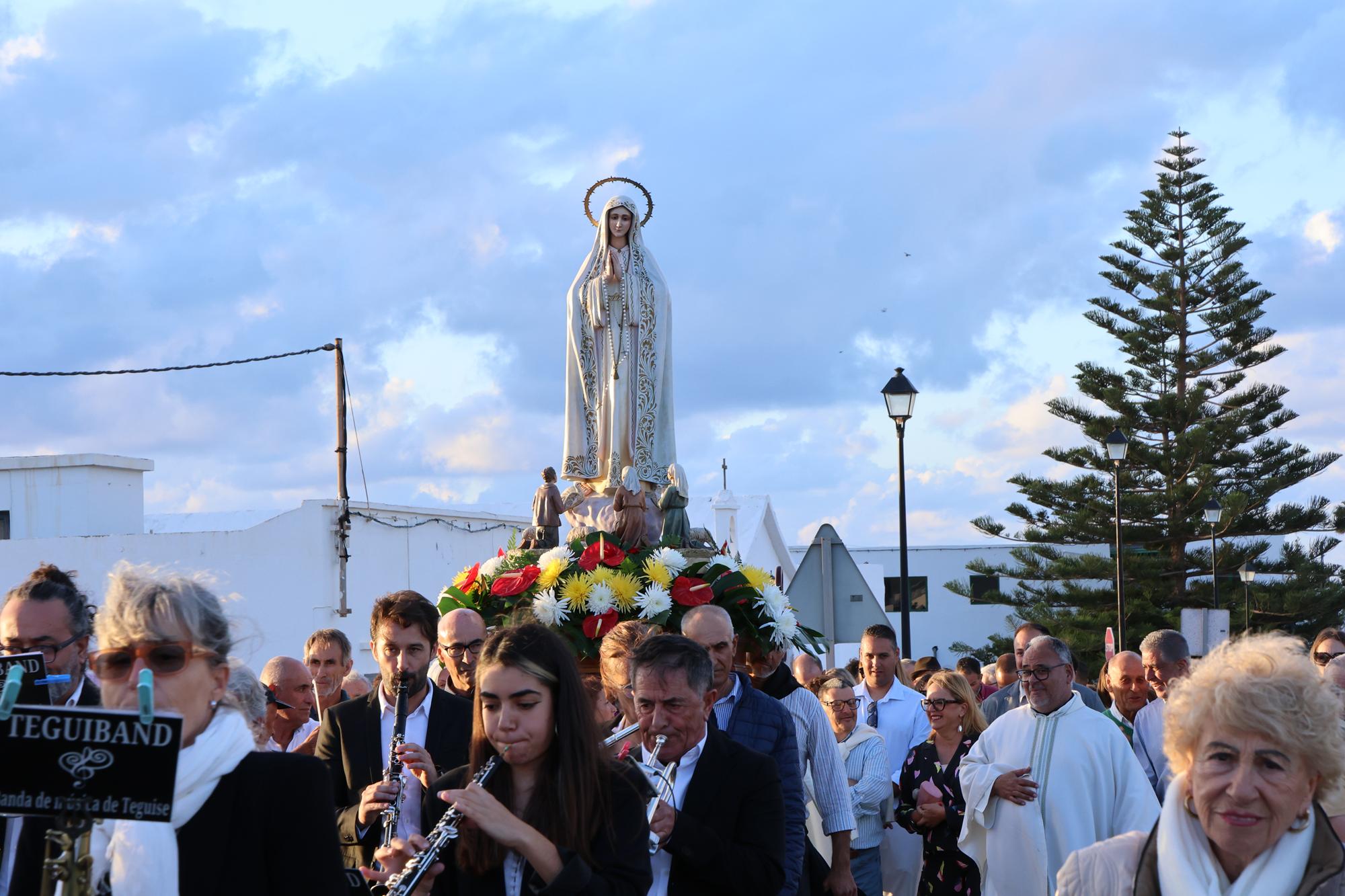 Finalizada la Eucaristía, se procedió a la procesión por la carretera principal del pueblo donde los componentes de la banda de música de Teguise, Teguiband, dirigida por el profesor Ayoze Rodríguez, iban marcado el paso procesional. La banda siguió a la imagen de Nuestra Señora de Fátima portada a hombros de los vecinos de Muñique, el obispo, sacerdotes celebrantes, autoridades municipales y feligreses.