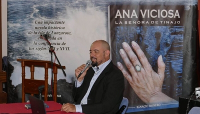 La novela histórica 'Ana Viciosa - La Señora de Tinajo' está basada en una figura histórica de la comarca de Tinajo y a la que lleva interpretando en sus rutas de senderismo desde hace más de veinte años. El escritor contó para la ocasión con la colaboración de dos lectoras encargadas de leer algunos párrafos de la misma.