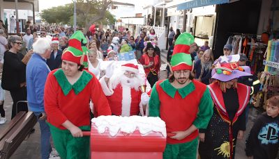 Papá Noel y su comitiva aparecieron al atardecer de este lunes 23 de diciembre en la calle Limones de Playa Blanca, avivando, y de qué manera, la víspera de Nochebuena en la zona comercial del núcleo turístico, donde decenas de familias se reunieron para seguir a la figura más solicitada por estos días en el recorrido que hizo junto a personajes infantiles desde las cercanías del puerto hasta la rotonda pequeña del pueblo.