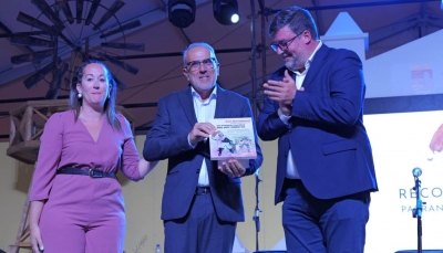 Juan Antonio Machado, muy emocionado, se dirigió a los presentes agradeciendo al alcalde y miembros de la corporación municipal la entrega del 'Reconocimiento Ajei 2024'. La noche continúo con el espectáculo 'Haciendo caminos', un musical avalado por las voces de Pedro Manuel Afonso, Ciro Corujo y Nayara Viñoly que estuvieron acompañados por Luis Montesdeoca a la guitarra y Daniel García - timple y requinto.