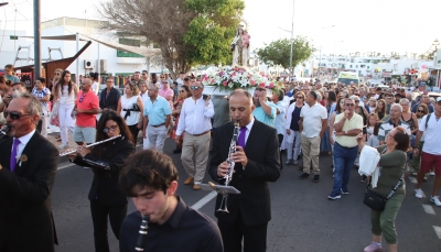 Emoción de los feligreses que acompañaron la peregrinación, lágrimas además de quienes se turnaron para llevar en hombros la figura de la Virgen, entre ellos, jóvenes y veteranos pescadores de Playa Blanca, así como vecinos y vecinas del pueblo de toda la vida, y lágrimas de los músicos que armonizaron su talento con el sentimiento de religiosidad presente en la jornada vespertina del día principal de Playa Blanca.