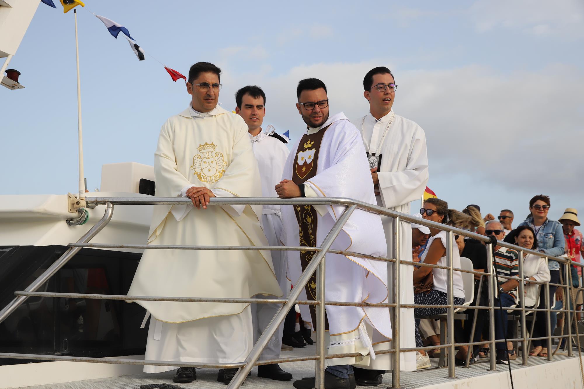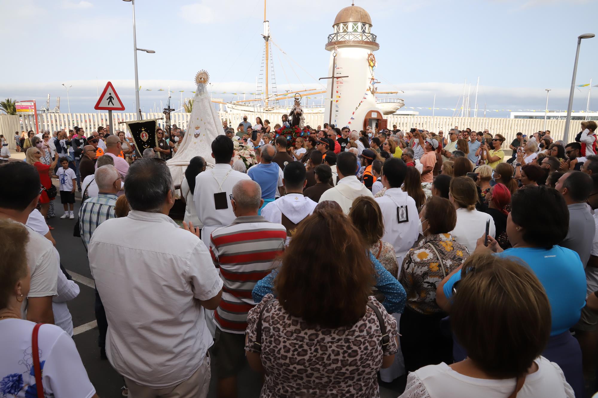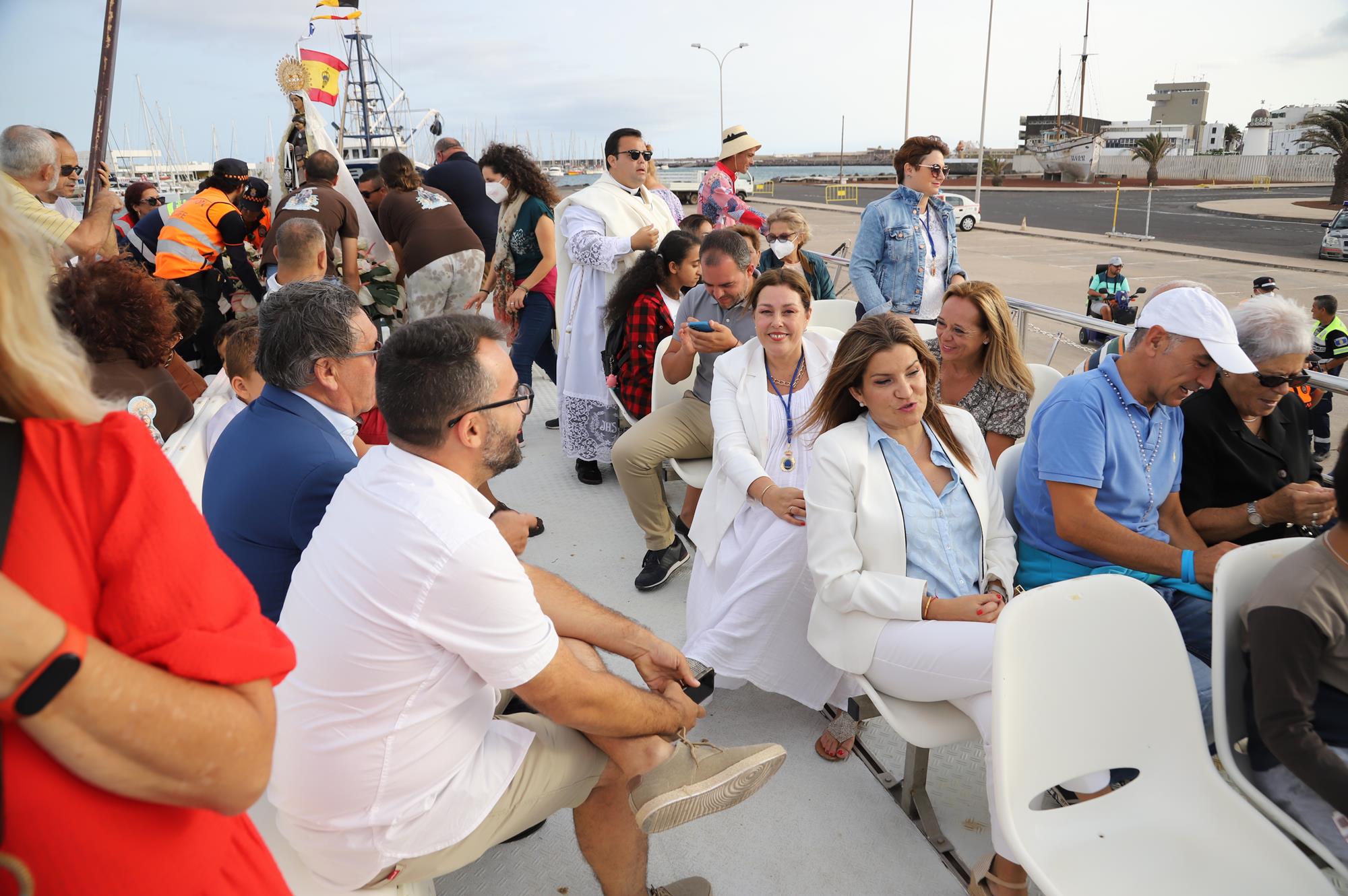 La alcaldesa de Arrecife Astrid Pérez y la concejala de Fiestas Encarna Páez también participaron de la misa y acompañaron a la Virgen durante todo el recorrido procesional y de embarque.