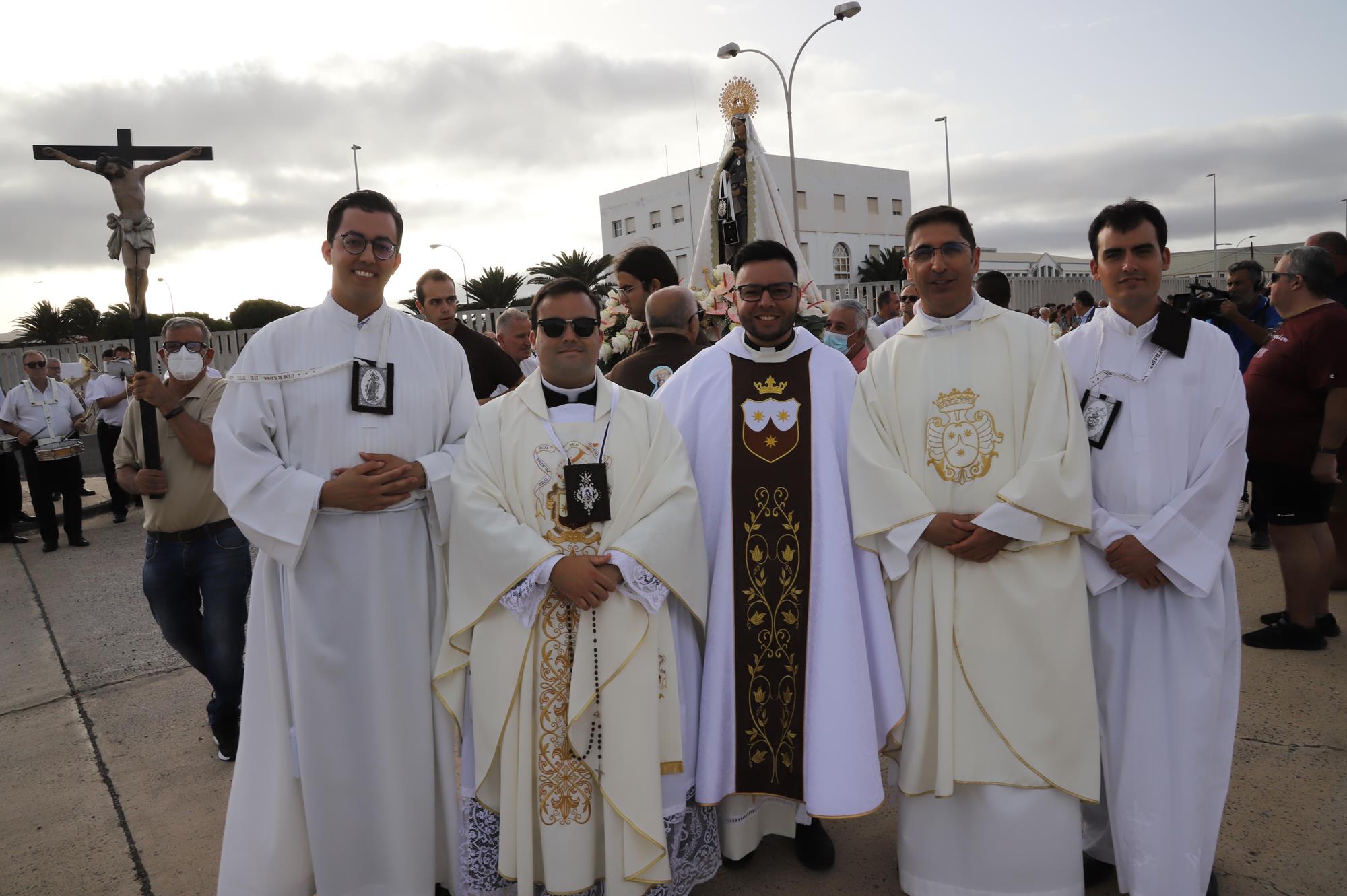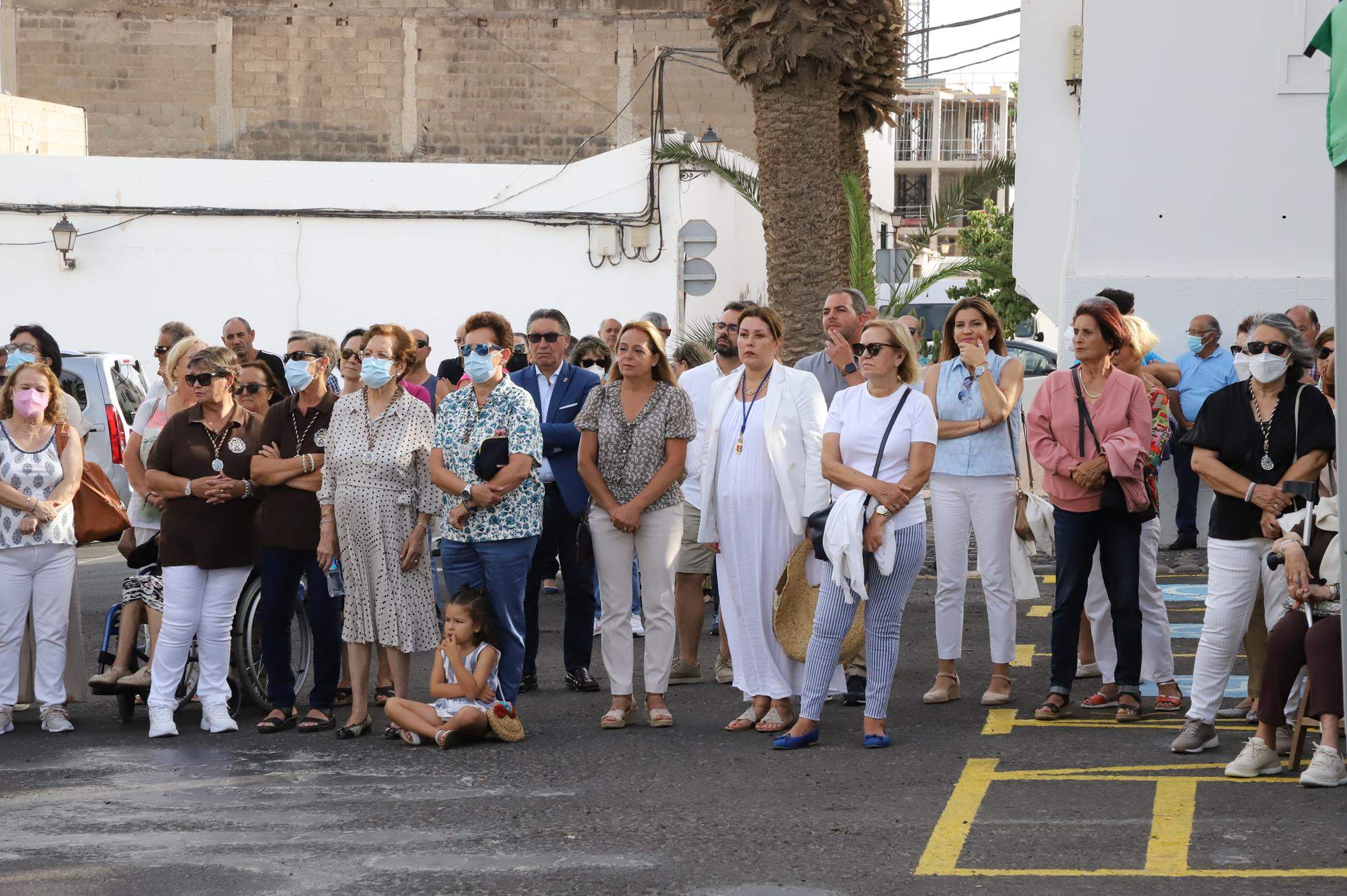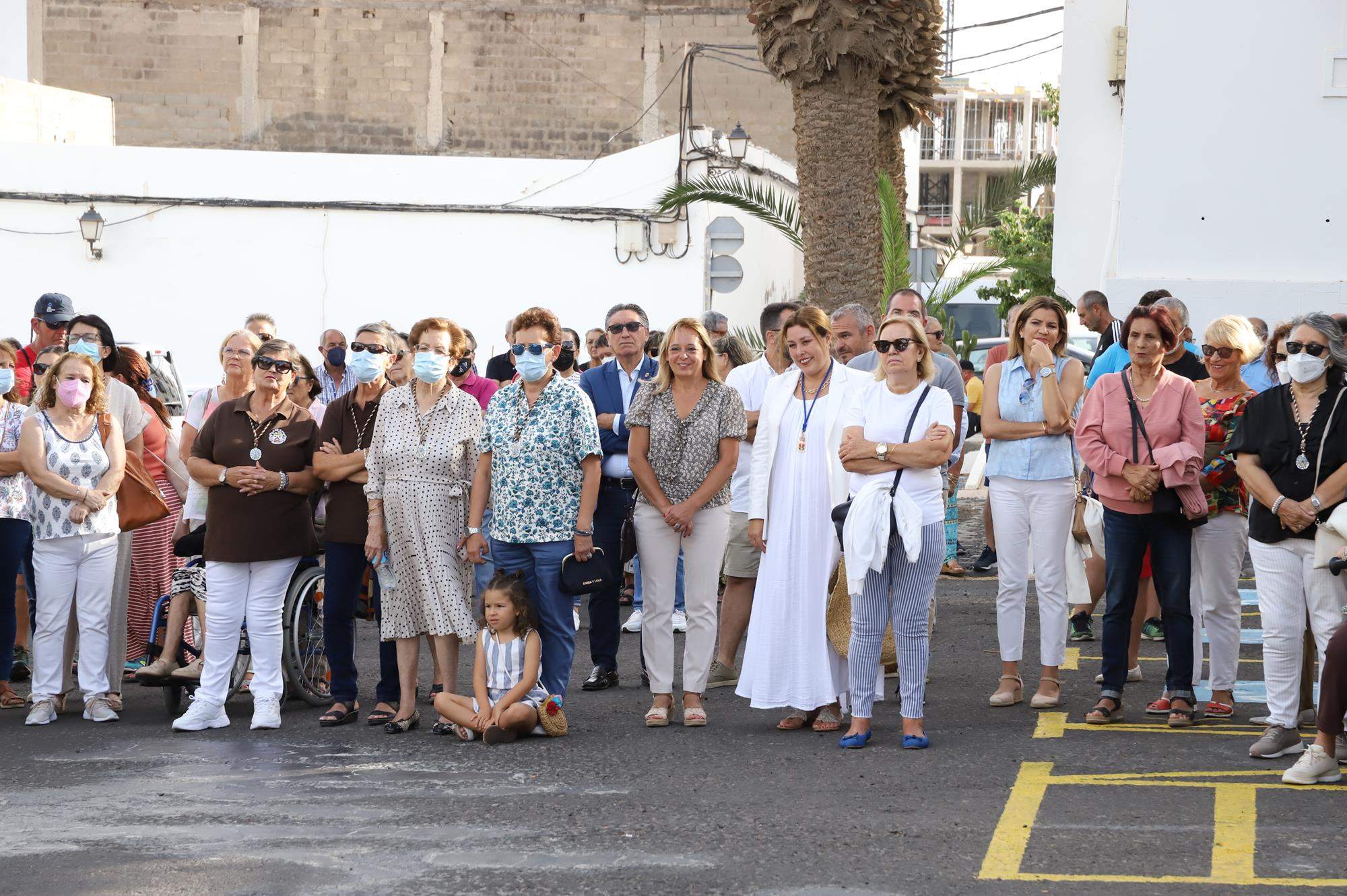 La alcaldesa de Arrecife Astrid Pérez y la concejala de Fiestas Encarna Páez también participaron de la misa y acompañaron a la Virgen durante todo el recorrido procesional y de embarque.