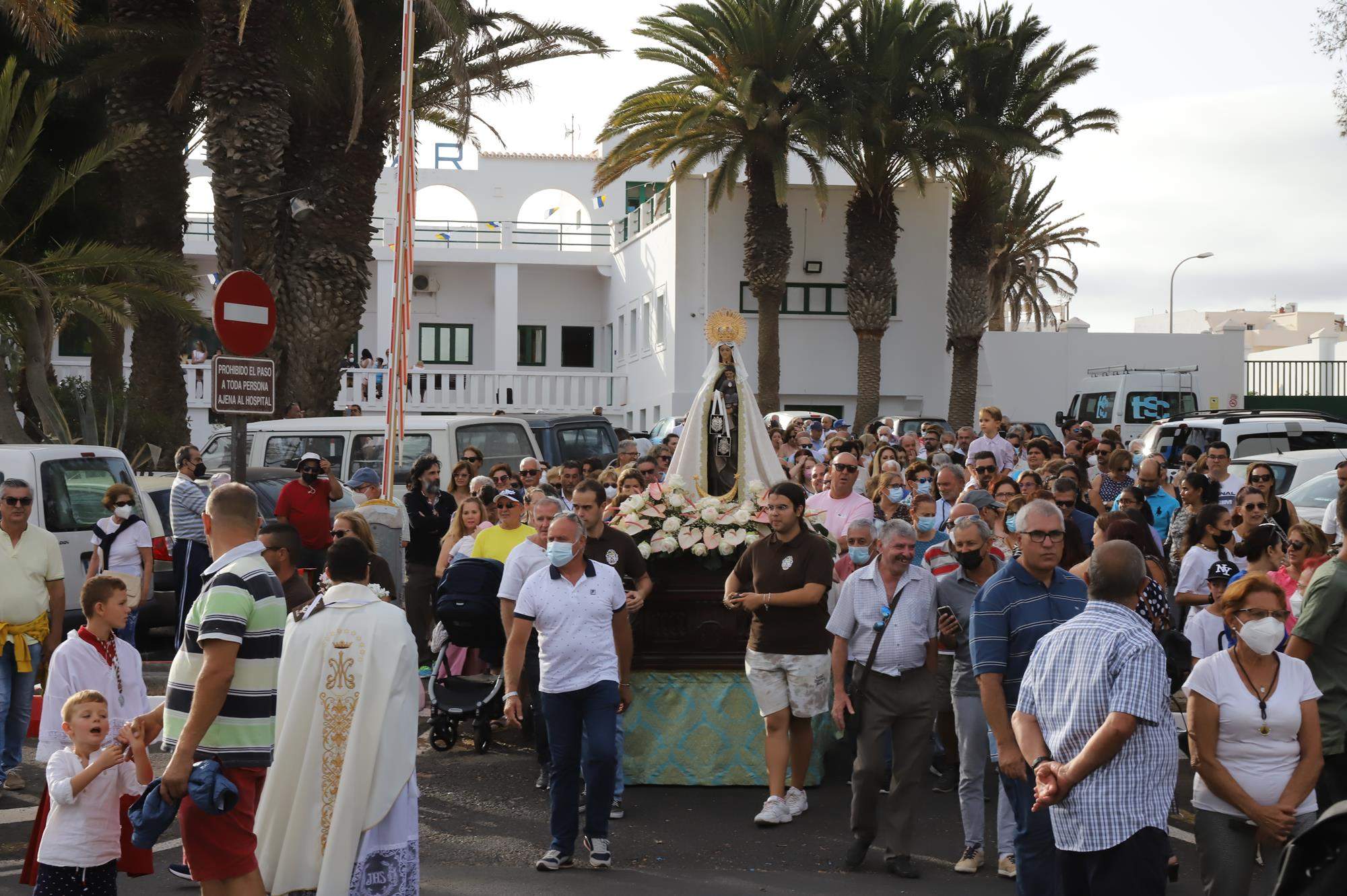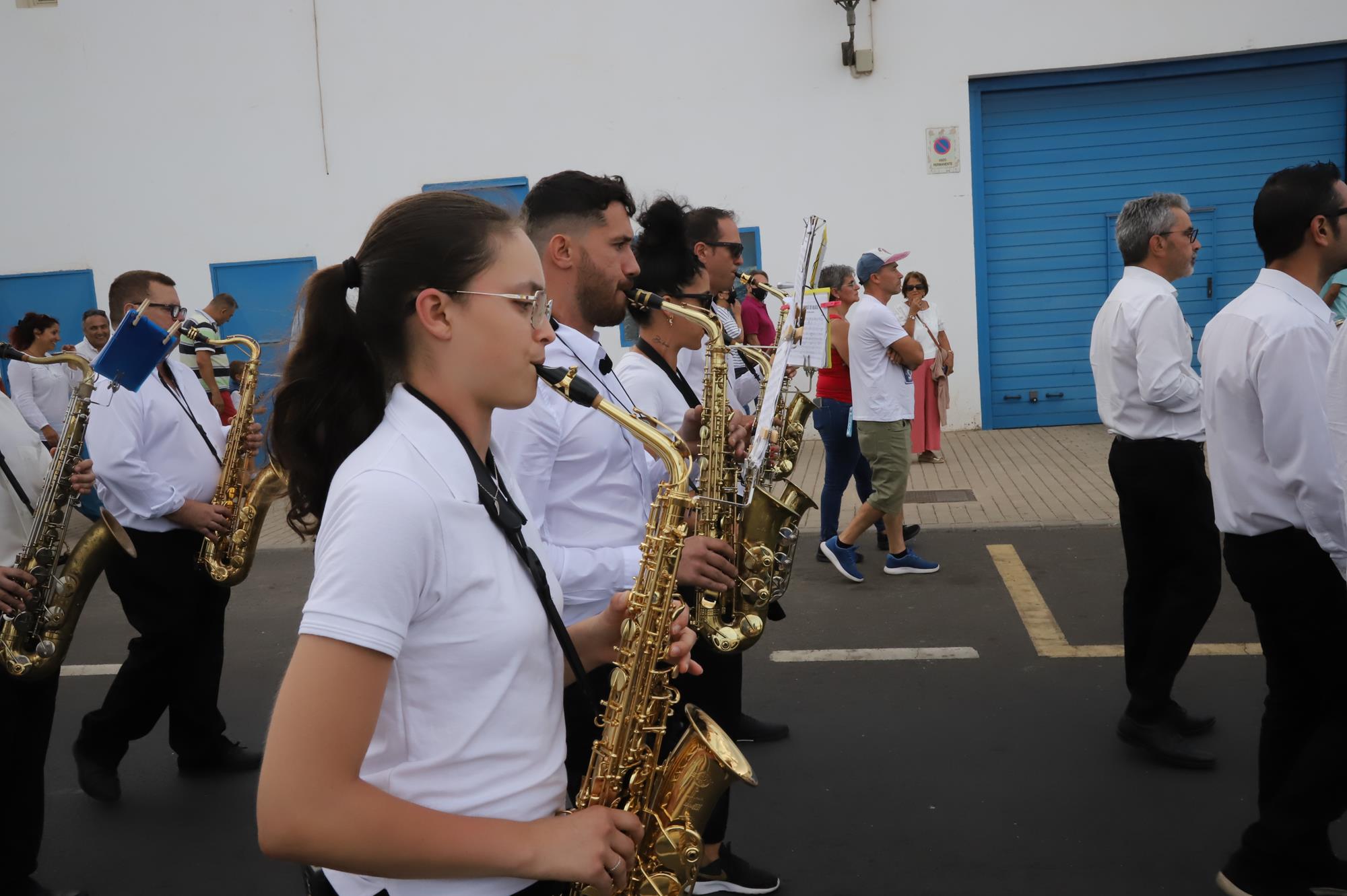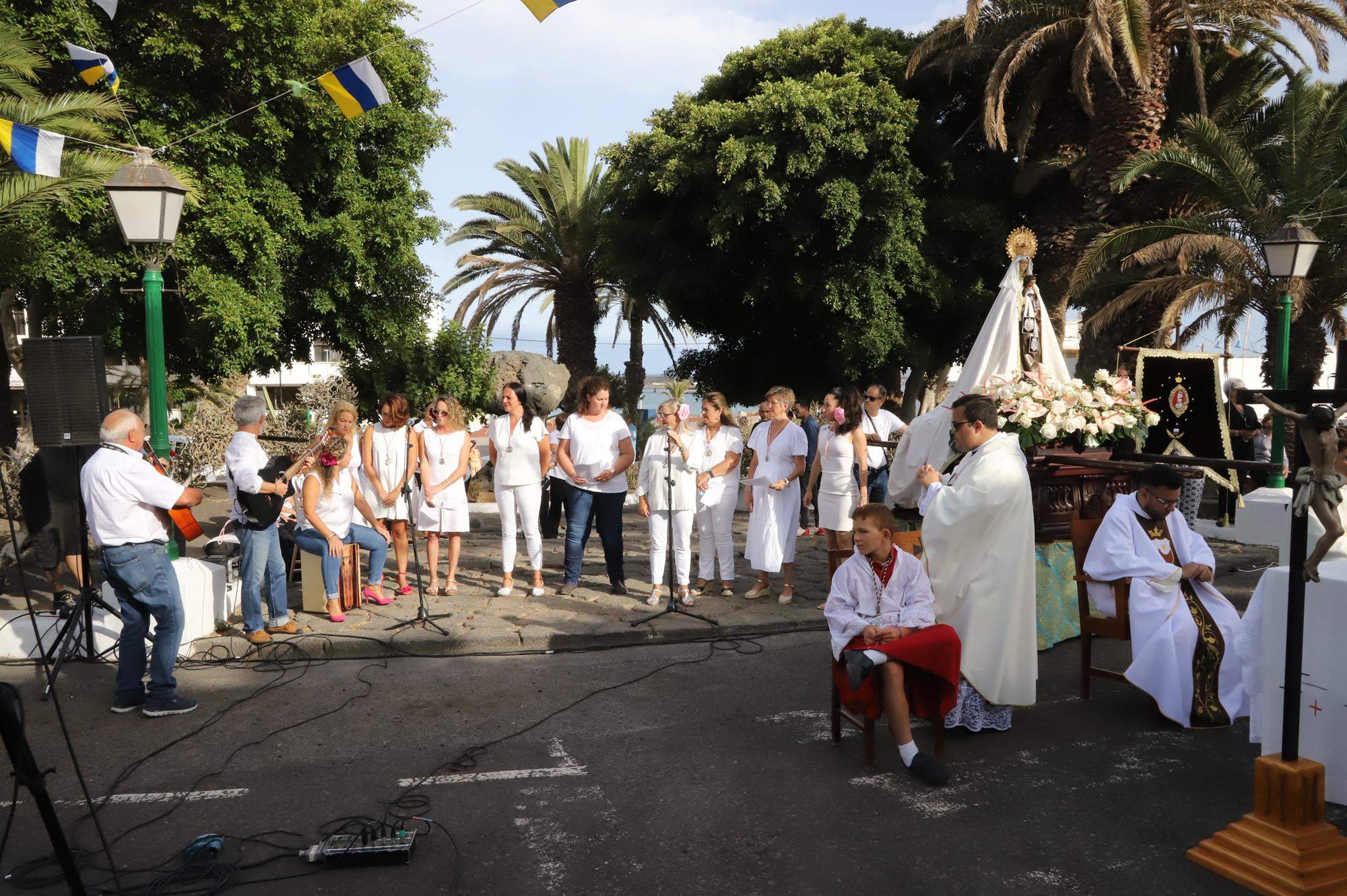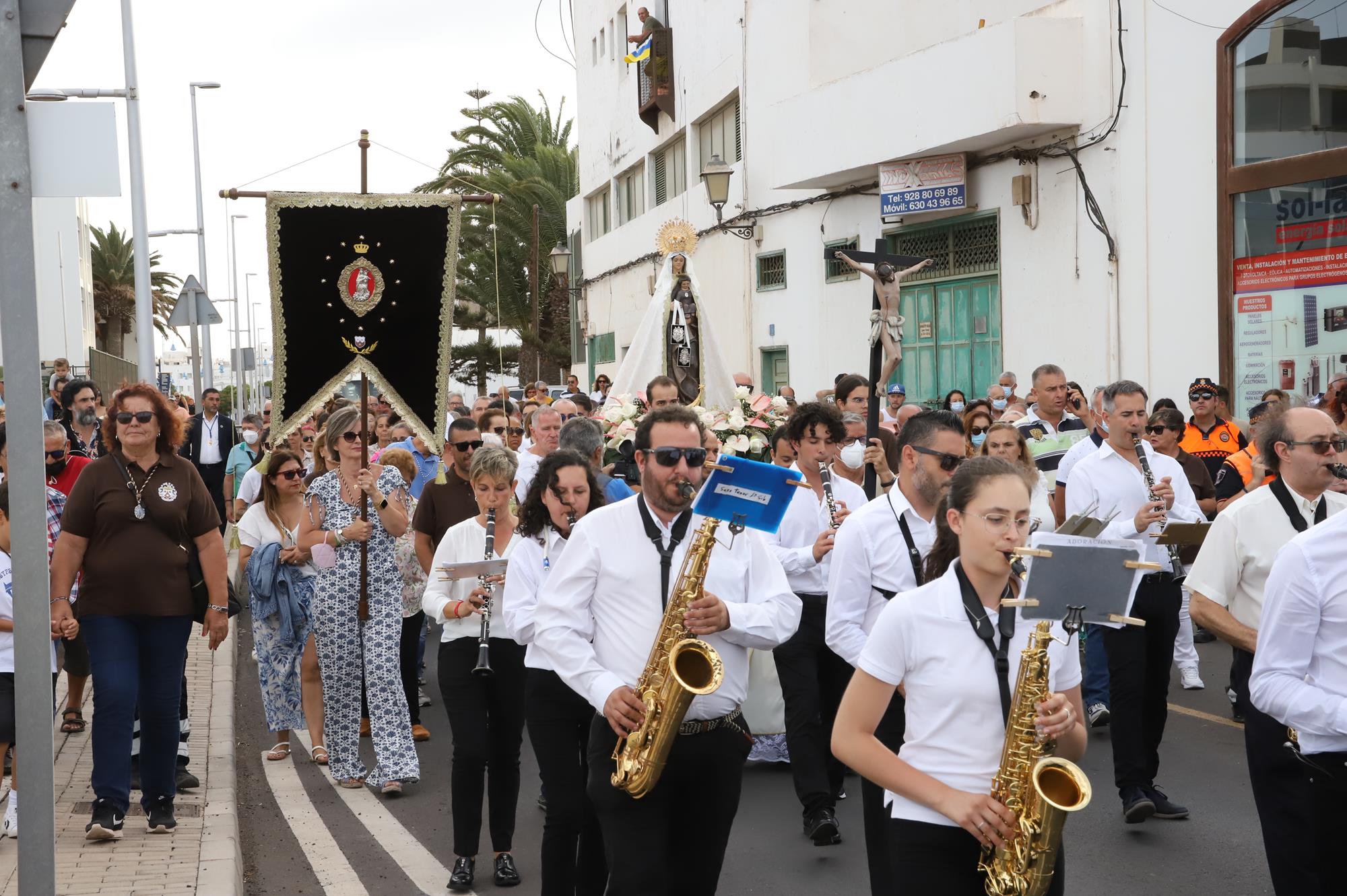La misa estuvo amenizada con los cantos interpretados por la Coral Iris del Mar, de Valterra, así como por el Coro Rociero Al-Andalus entre Alisios y Levante. Una vez finalizada, la procesión puso rumbo al muelle de Puerto Naos, encabezada por la banda de música Unión Musical de Lanzarote, dirigida por el profesor Pepe Artiles. Al pasar por el monumento "La luz que nos Guía", un homenaje a los marineros fallecidos, la Coral Iris del Mar cantó la "Salve Marinera".