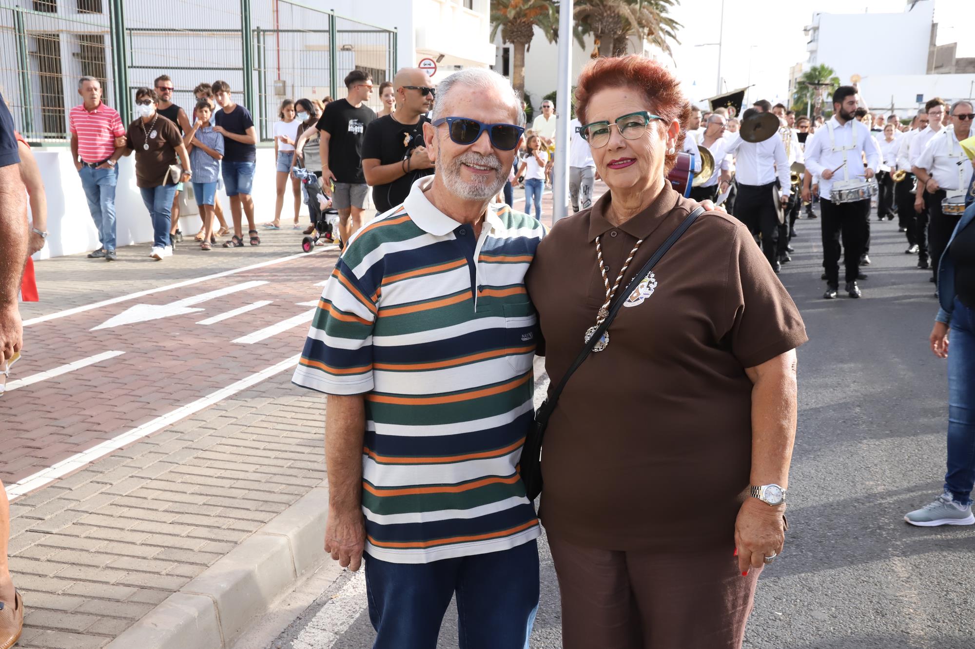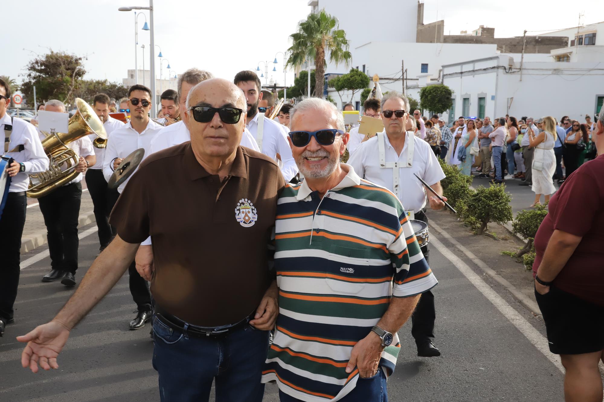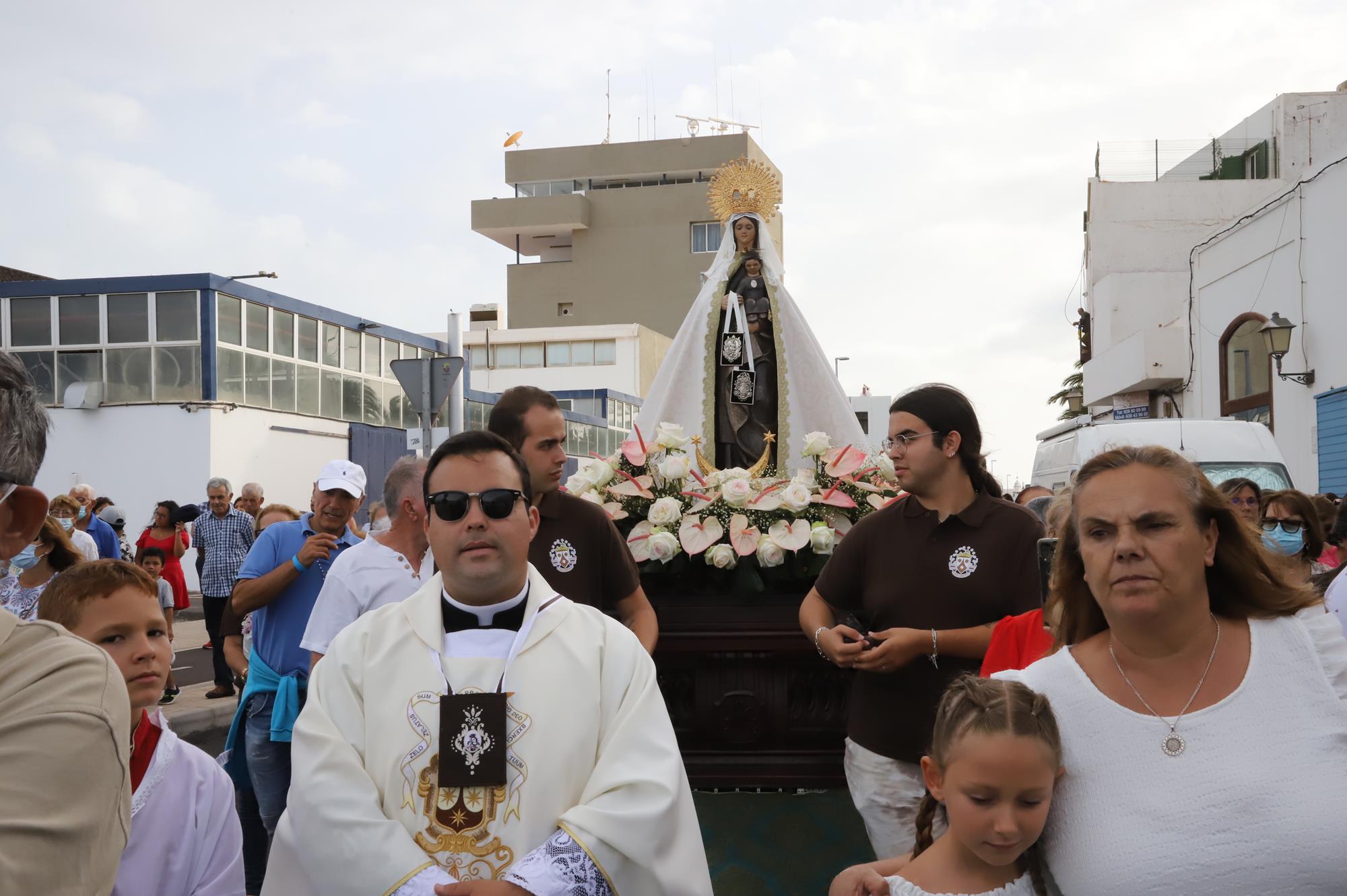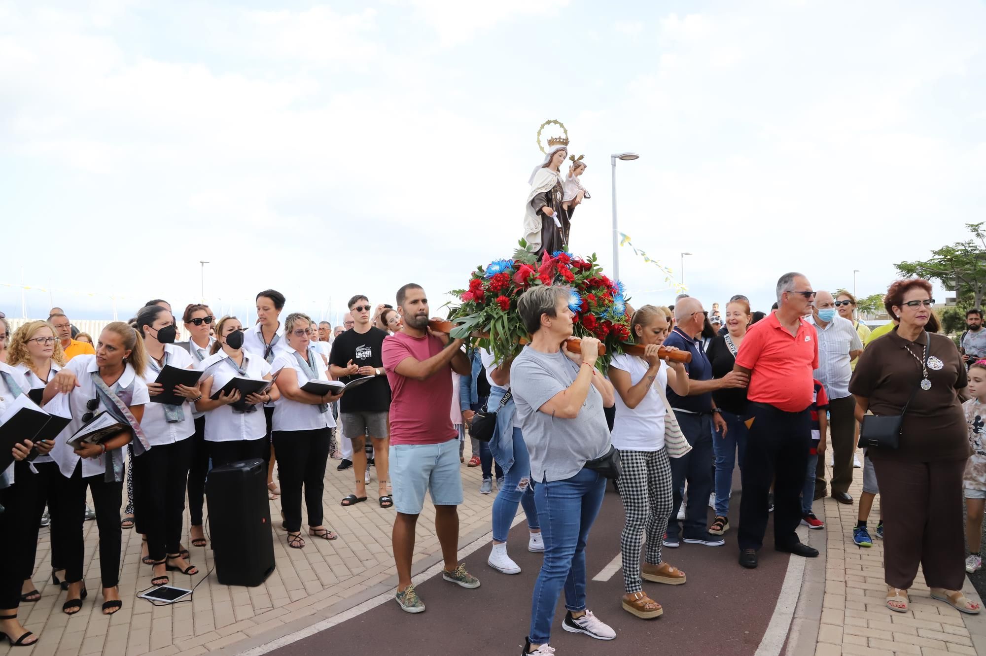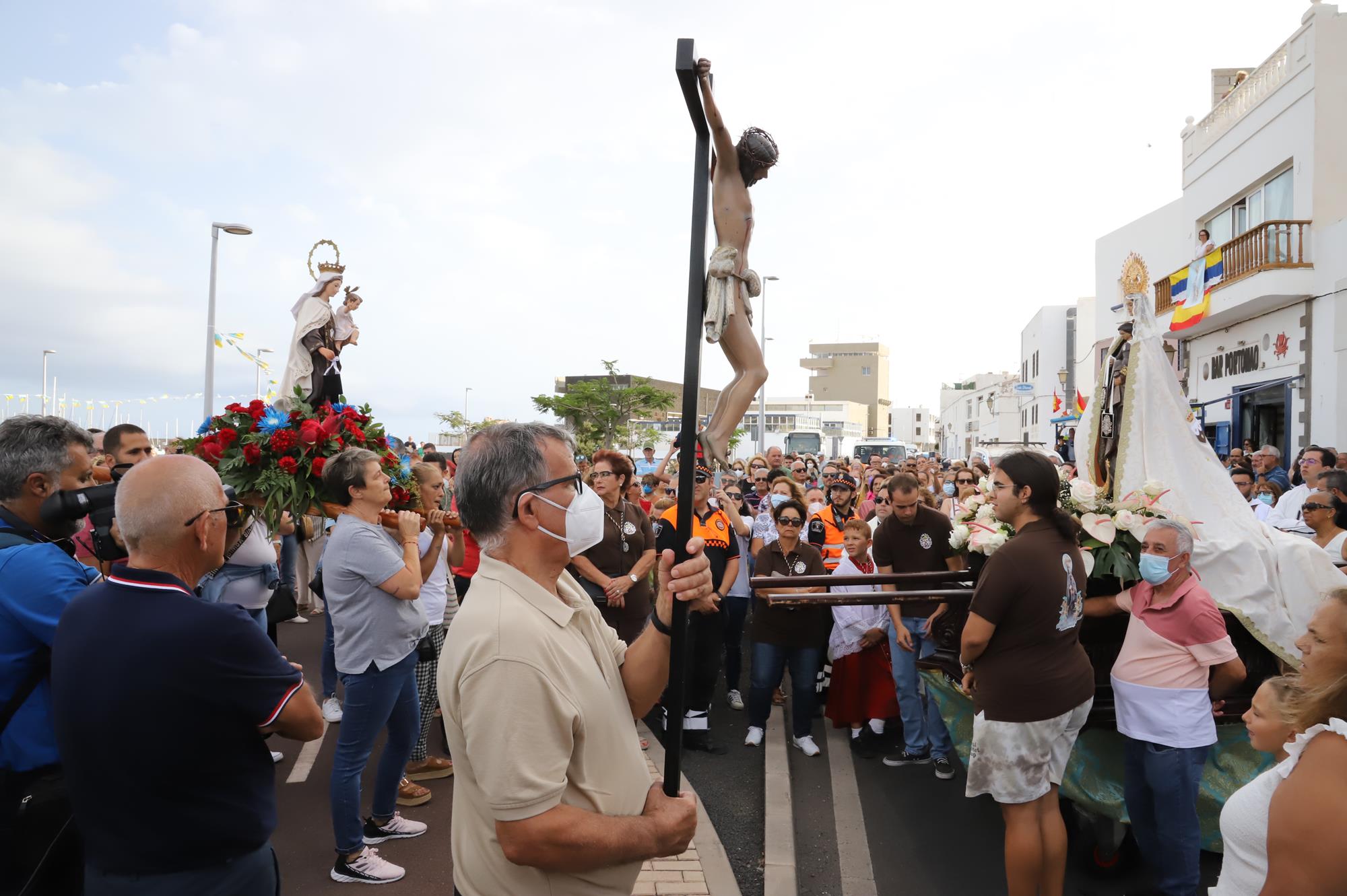 La misa estuvo amenizada con los cantos interpretados por la Coral Iris del Mar, de Valterra, así como por el Coro Rociero Al-Andalus entre Alisios y Levante. Una vez finalizada, la procesión puso rumbo al muelle de Puerto Naos, encabezada por la banda de música Unión Musical de Lanzarote, dirigida por el profesor Pepe Artiles. Al pasar por el monumento "La luz que nos Guía", un homenaje a los marineros fallecidos, la Coral Iris del Mar cantó la "Salve Marinera".