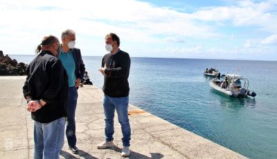 José Juan Cruz, alcalde del Ayuntamiento de Tías, Mame Fernández, primer teniente de alcalde y concejal de Turismo, y Nicolás Saavedra, segundo teniente de alcalde y concejal de Servicios Sociales, visitaron el set