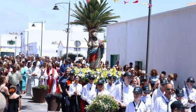 Los primeros bancos estuvieron ocupados por las autoridades civiles y militares, entre ellos el alcalde de San Bartolomé, Isidro Pérez; el presidente del Cabildo de Lanzarote, Oswaldo Betancort; la parlamentaria Alicia Pérez y el alcalde de Haría Alfredo Villalba, junto a concejales de la corporación municipal y representantes de las fuerzas armadas.