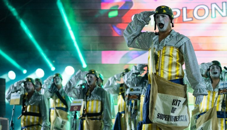 ‘Arrr, Simplón a la vista!’, diseñada por la propia murga, fue la fantasía que dio el título en dicha categoría a Los Simplones, que bajo la dirección musical de Quyke Martín y Xerach Casanova interpretaron las canciones ‘Para cualquier emergencia, mi kit de supervivencia’ y ‘Los conciertos de San Ginés’.