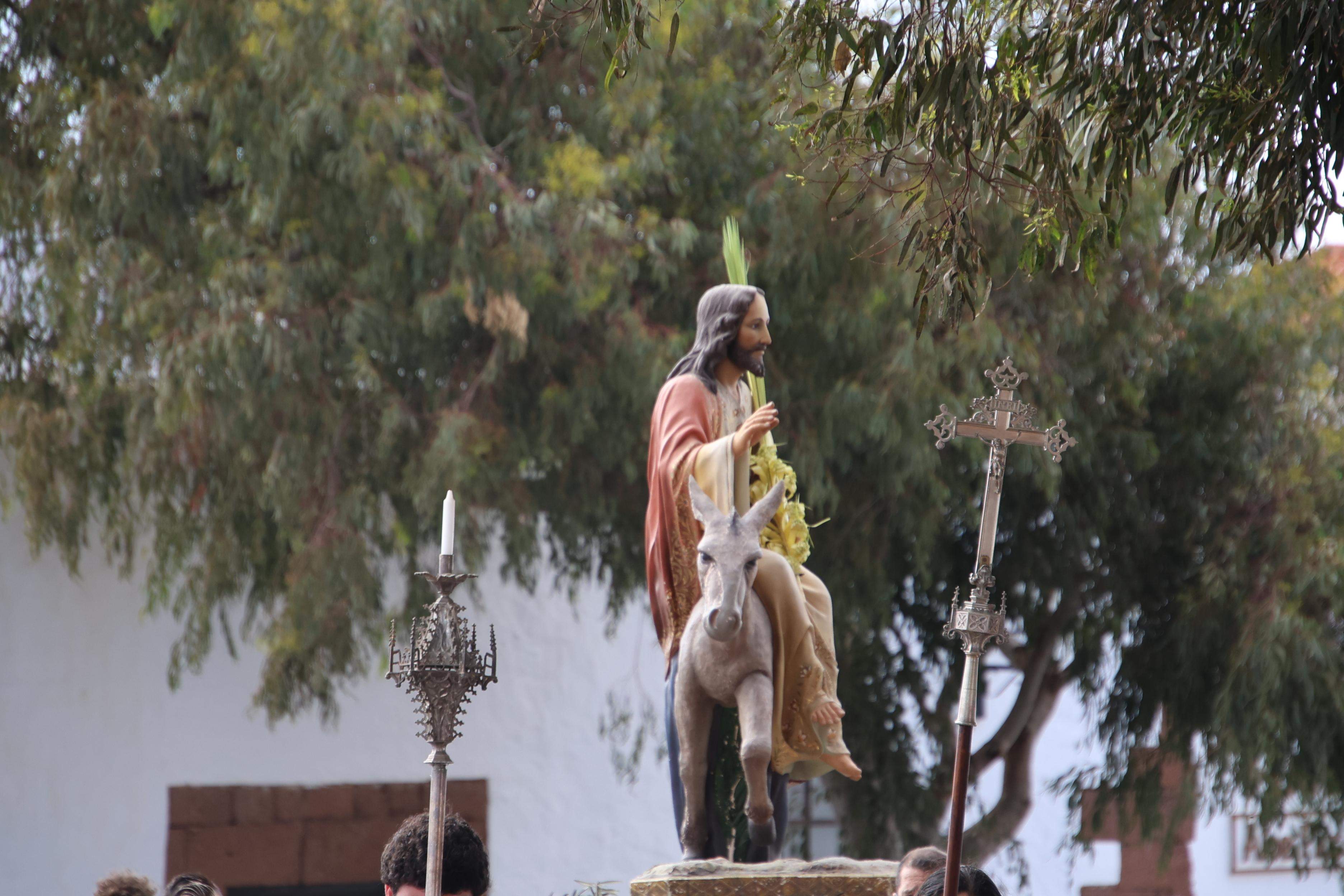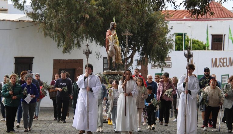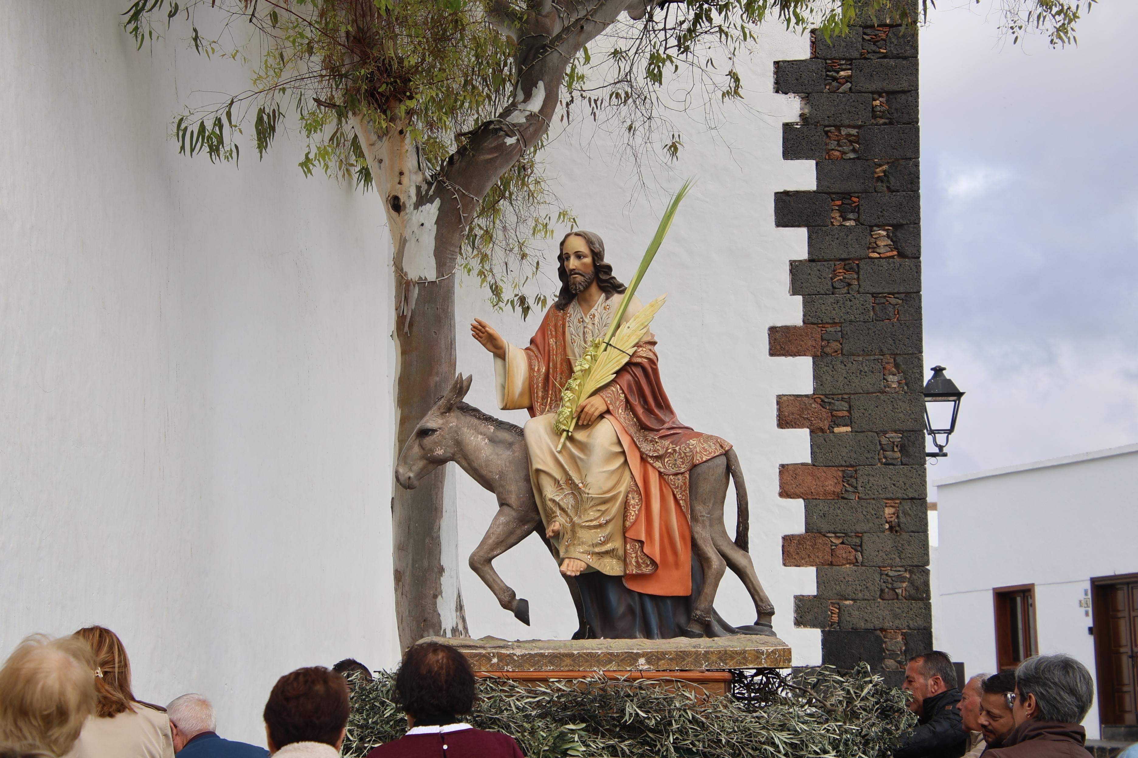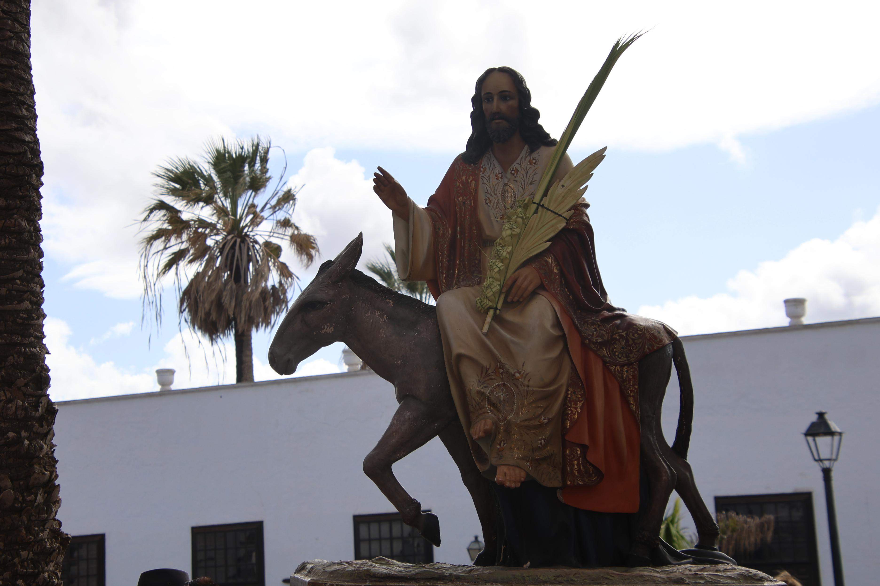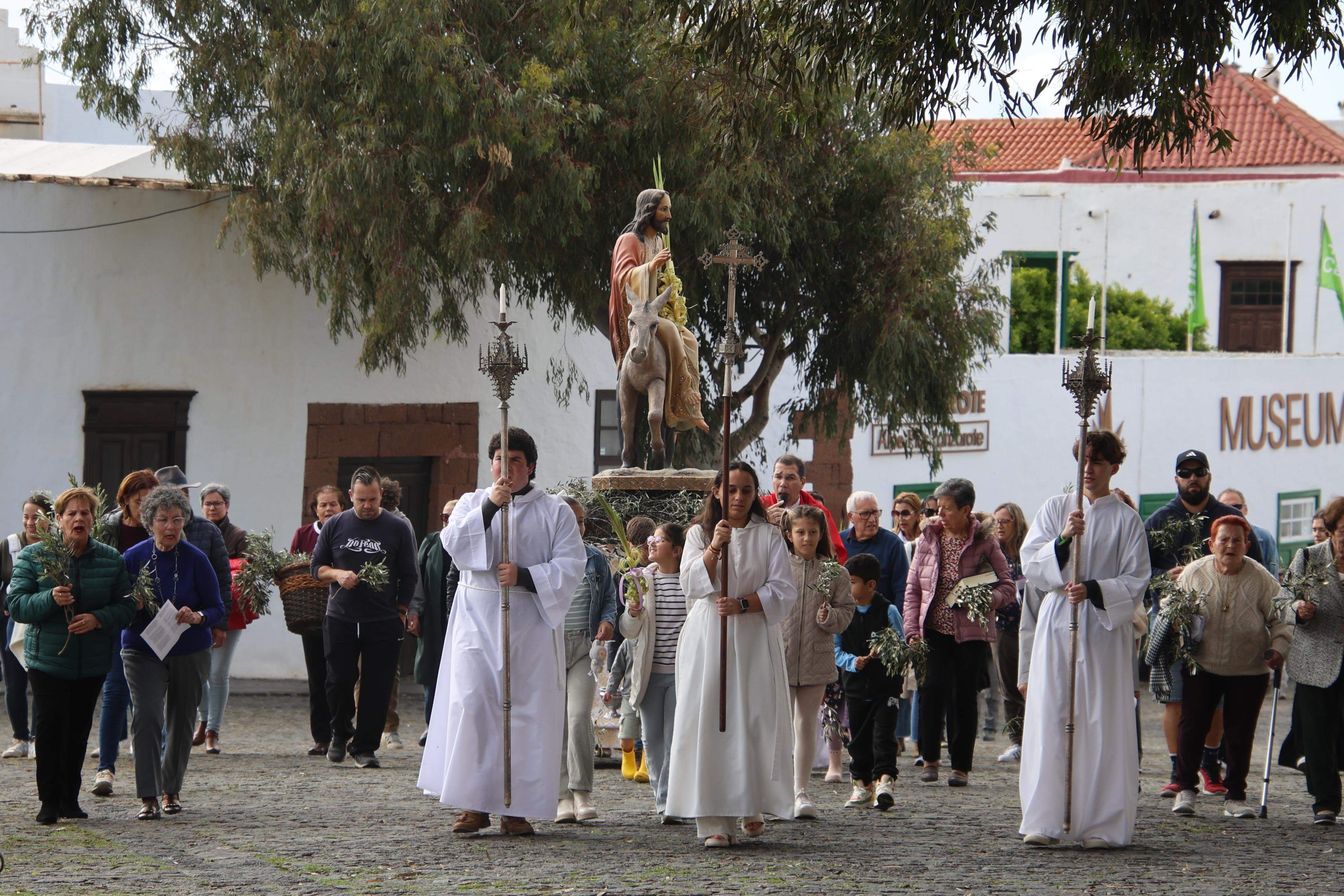 A las 17´00 horas y al soco de la ermita del Santísimo Cristo de la Vera Cruz junto a la imagen del Señor de la Burrita, el párroco titular de Teguise, Juan Manuel Molina, bendecía las ramas de olivo y palmas que portaban los feligreses. A continuación, se puso en marcha el cortejo procesional por las empedradas calles del Conjunto Histórico de Teguise hasta la iglesia matriz de Nuestra Señora de Guadalupe donde se llevó a cabo la celebración de la Eucaristía, presidida por el párroco titular asistido por los acólitos.