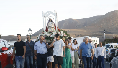 Finalizada la Eucaristía, se procedió a la procesión con la imagen de Nuestra Señora del Perpetuo Socorro llevada hombros por los vecinos del pueblos, seguida de los sacerdotes celebrantes, autoridades municipales con la alcaldesa del Ayuntamiento de Teguise, Olivia Duque, juntos recorrieron las calles cercanas a la iglesia.