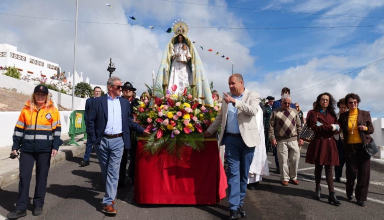El municipio de Tías celebró este domingo la festividad de su Patrona Nuestra Señora de Candelaria. A las 12,00 horas con la iglesia abarrotada por los feligreses comenzaba la celebración de la Eucaristía presidida por José Antonio Molina Nieto, párroco de San José Obrero en Titerroy y Santa María de la Vega quien estuvo asistido por el párroco titular de Tías, Adrián Sosa Nuez. Los cantos para esta celebración especial estuvieron dirigidos por la profesora Carmen Dolores.